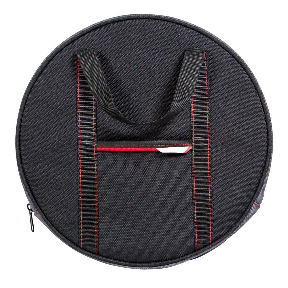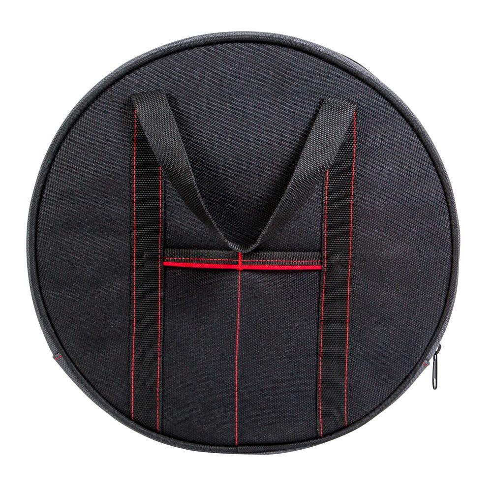 14 in. Dia main compartment easily holds audio and jumper cables, extension cords, and even 2 straps