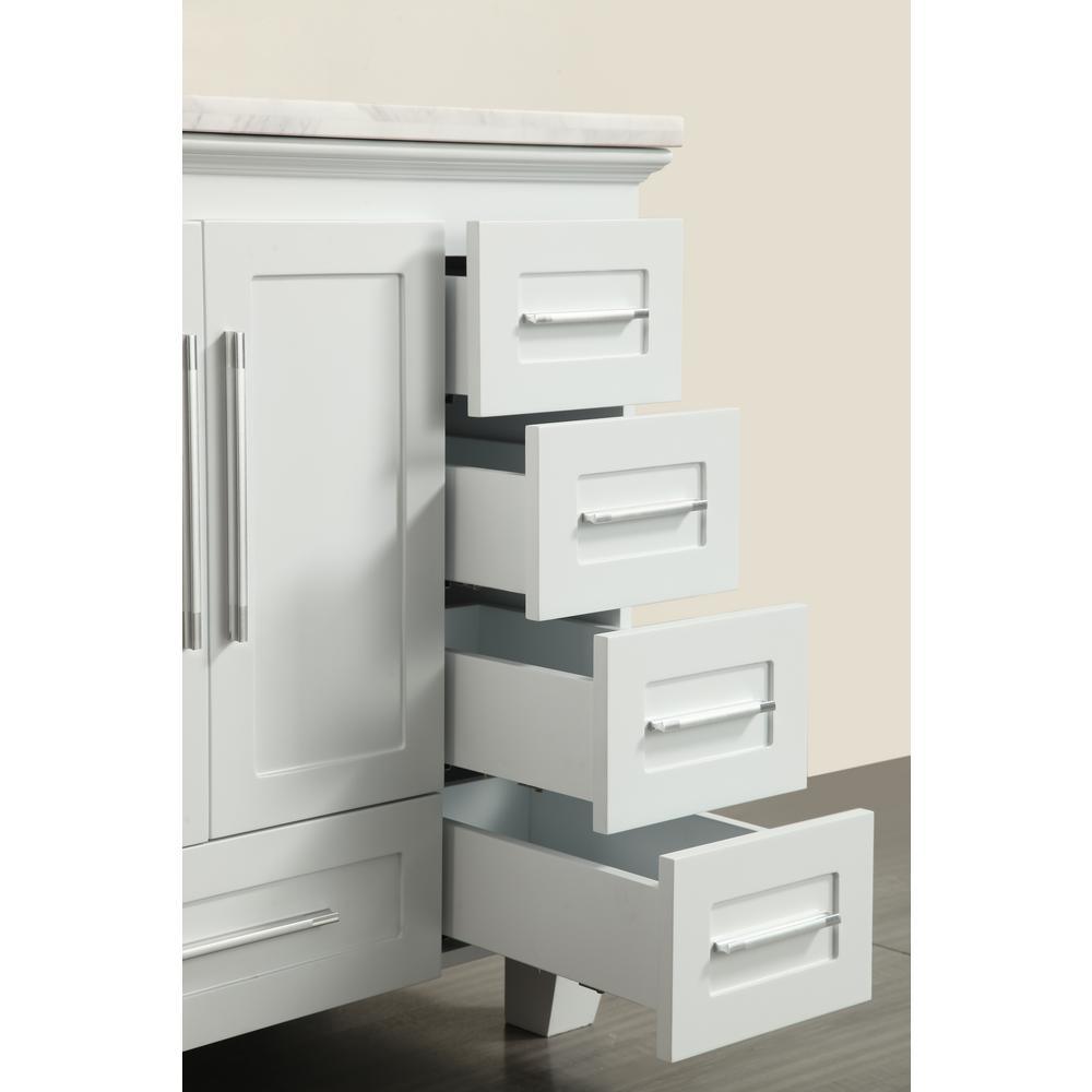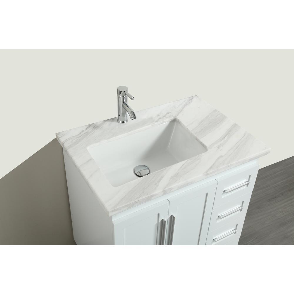 • Includes pure white Carrera marble counter-top and a white porcelain sink