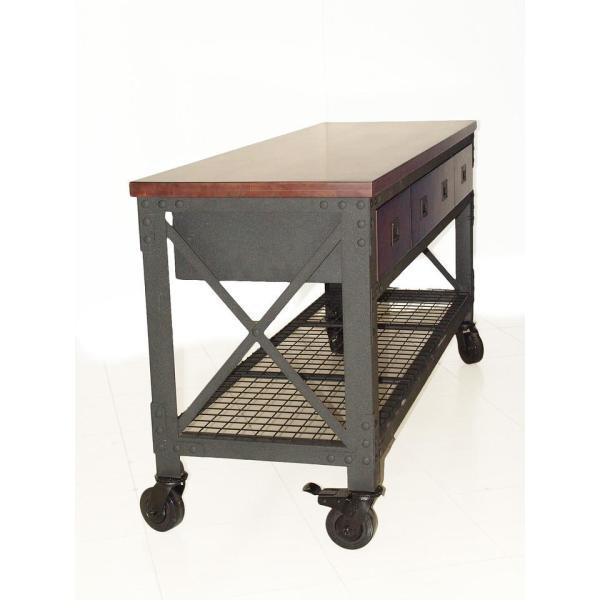 The Duramax 72 in. W x 24 in. D rolling workbench is ideal for all applications whether in a garage, workshop or as a piece of furniture. It is constructed with heavy-duty powder coasted steel frame with a solid rubber wood that features our proprietary durable hand coated finish. The 3 pullout drawers feature sturdy ball bearing slides and can each support up to 100 lbs. of weight. The lower wire shelf base is strong enough to hold up to 200 lbs. and add valuable real estate space while the heavy-duty casters ensure that it can be moved to any location at ease and the 2 locking casters secure it in its position.
