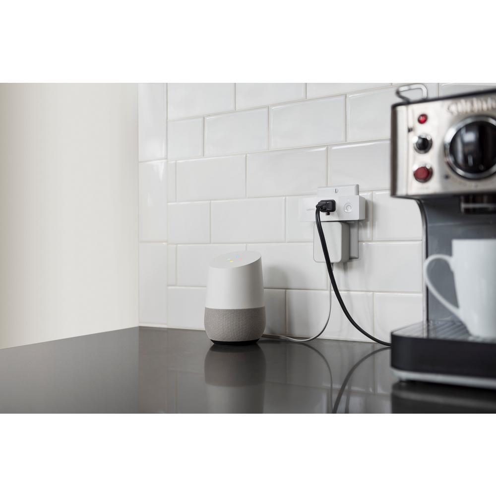 • Plug in a WeMo mini smart plug, download the WeMo app and control your lights and appliances from anywhere, even using your voice through Amazon Alexa and Google Assistant; only needs Wi-Fi