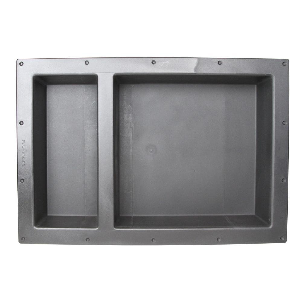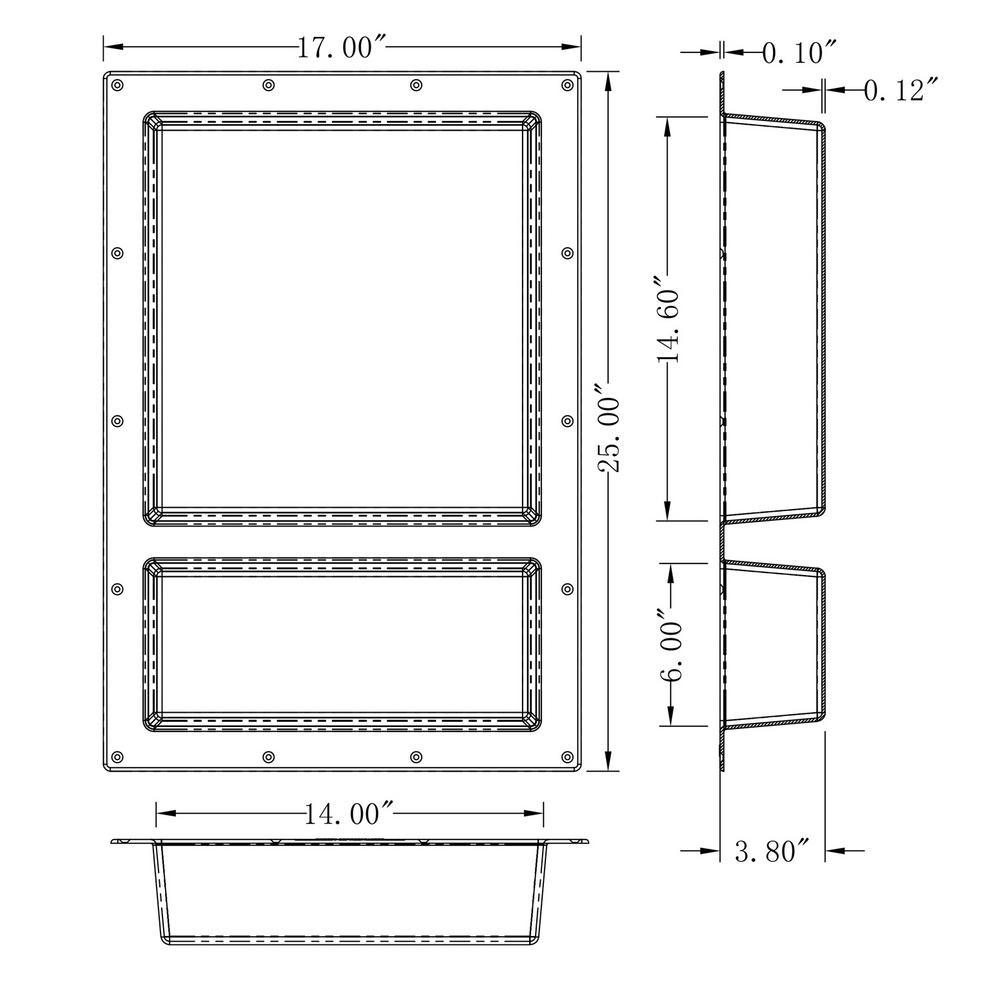 Concerned about mold and leakage in your contractor handmade niche in the shower, Look no further. Our prefabricated recessed niche is ready to tile. Constructed from ABS is lightweight, but very durable material, it is virtually indestructible without the clutter and leaks. Handmade niches typically experiences major problems in the long run, however with the prefabricated niche, it will not mold, mildew, rust or leak and 100% guarantee waterproof and leak-proof. Tile set directly on niche surface simple and quick install vertically or horizontally depending on your design. Fits standard wall framing. Make your shower niche a design focal point and still be able to place your shower necessities. Multiple sizes available for your bathroom design. Dimensions: Overall 25 in. x 17 in. x 3.75 in., I.D. (Hole 1): 13.4 in. x 13 in. x 3.75 in., I.D. (Hole 2): 5 in. x 13 in. x 3.75 in. Simple installation can be done in few easy steps compare with traditional handmade shower niche need to take about 4 hours to finish100% guarantee waterproof and leak-proof. Compare with handmade shower niche it will have a high chance to leak and cause mold problem Constructed with light weight and durable ABS material, strong bond with polymer modified thin-set mortar Can be install vertically or horizontally according to your bathroom design Overall Dimension: 17 in. x 25 in. x 3.75 in. I.D. (Hole 1): 13.4 in. x 13 in. x 3.75 in., I.D. (Hole 2): 5 in. x 13 in. x 3.75 in.