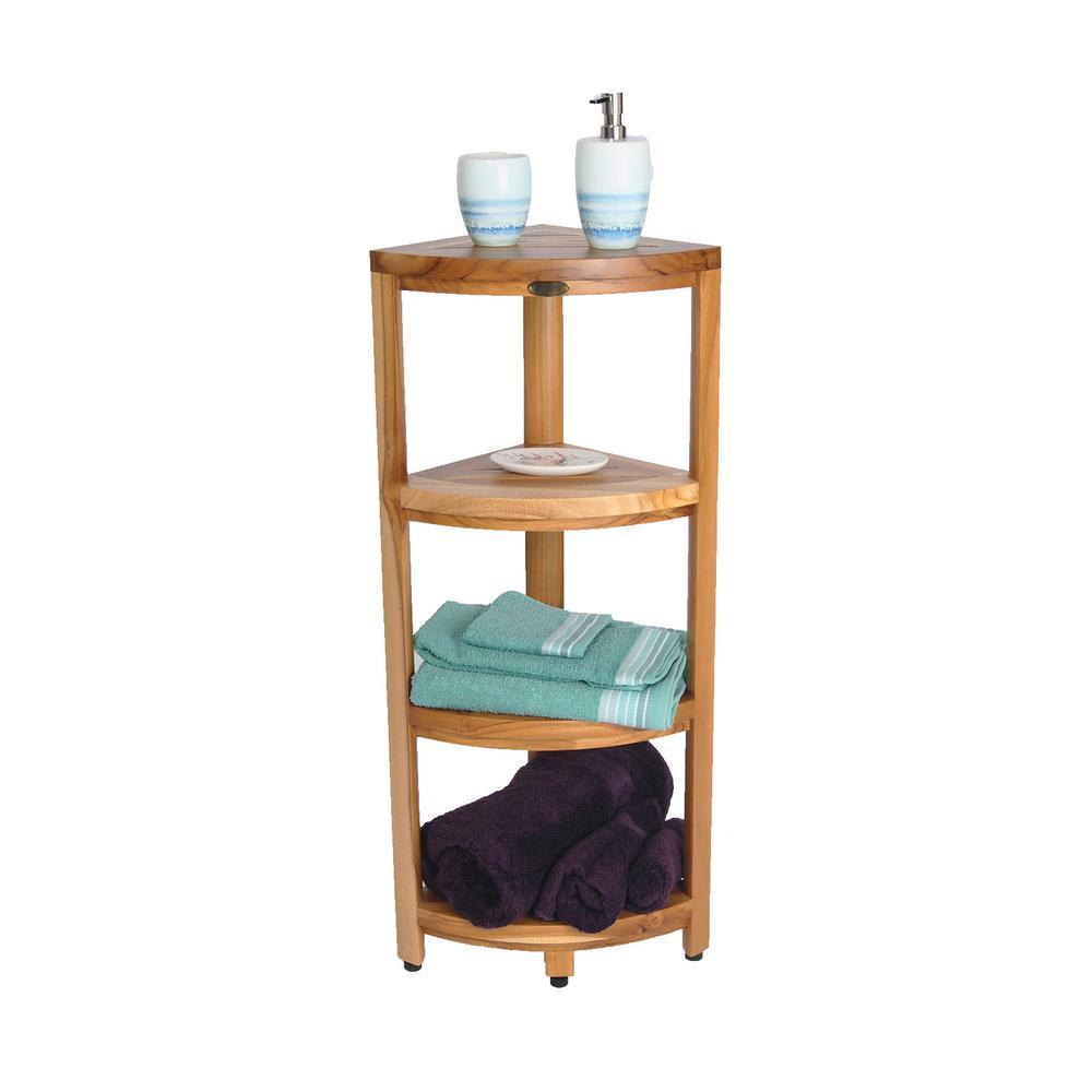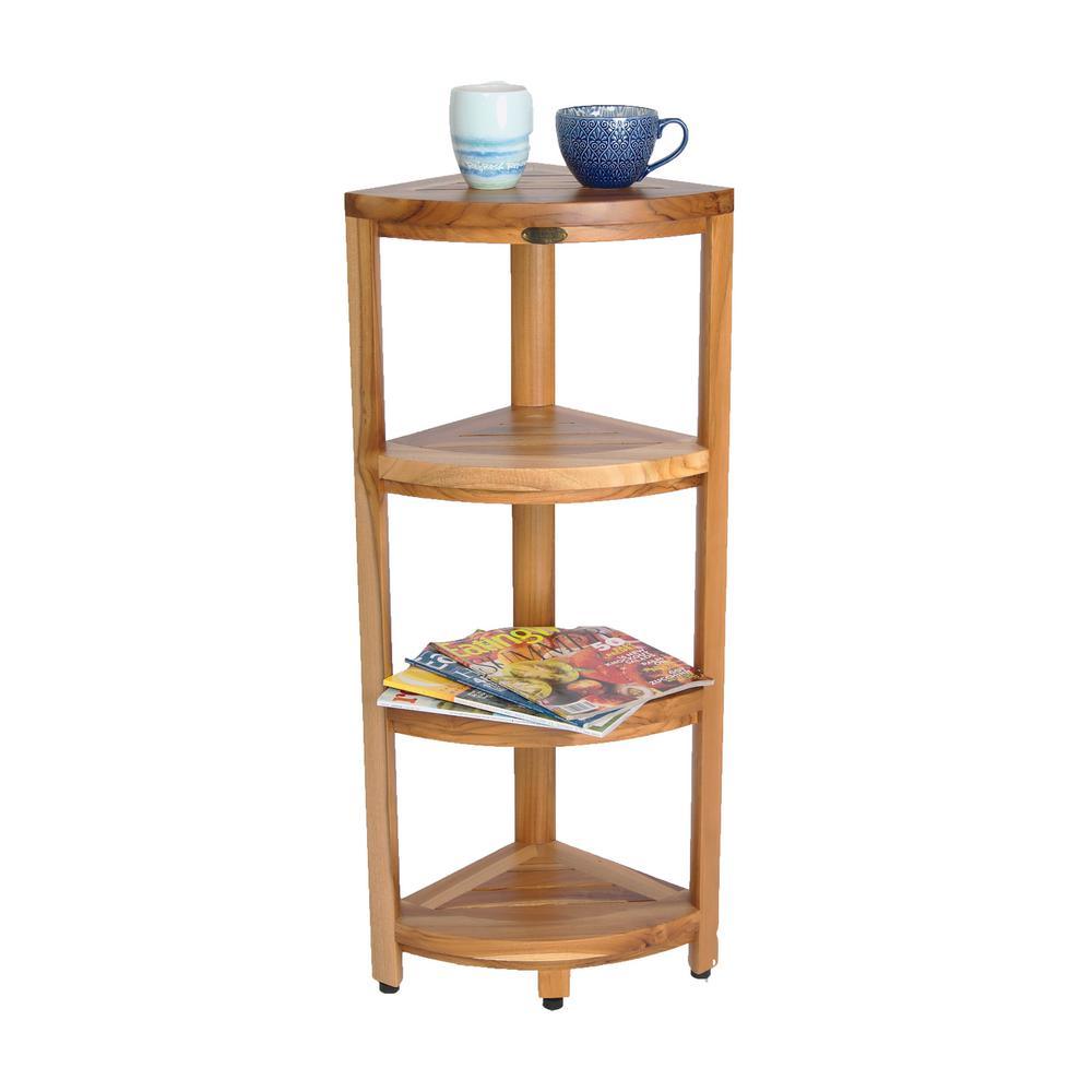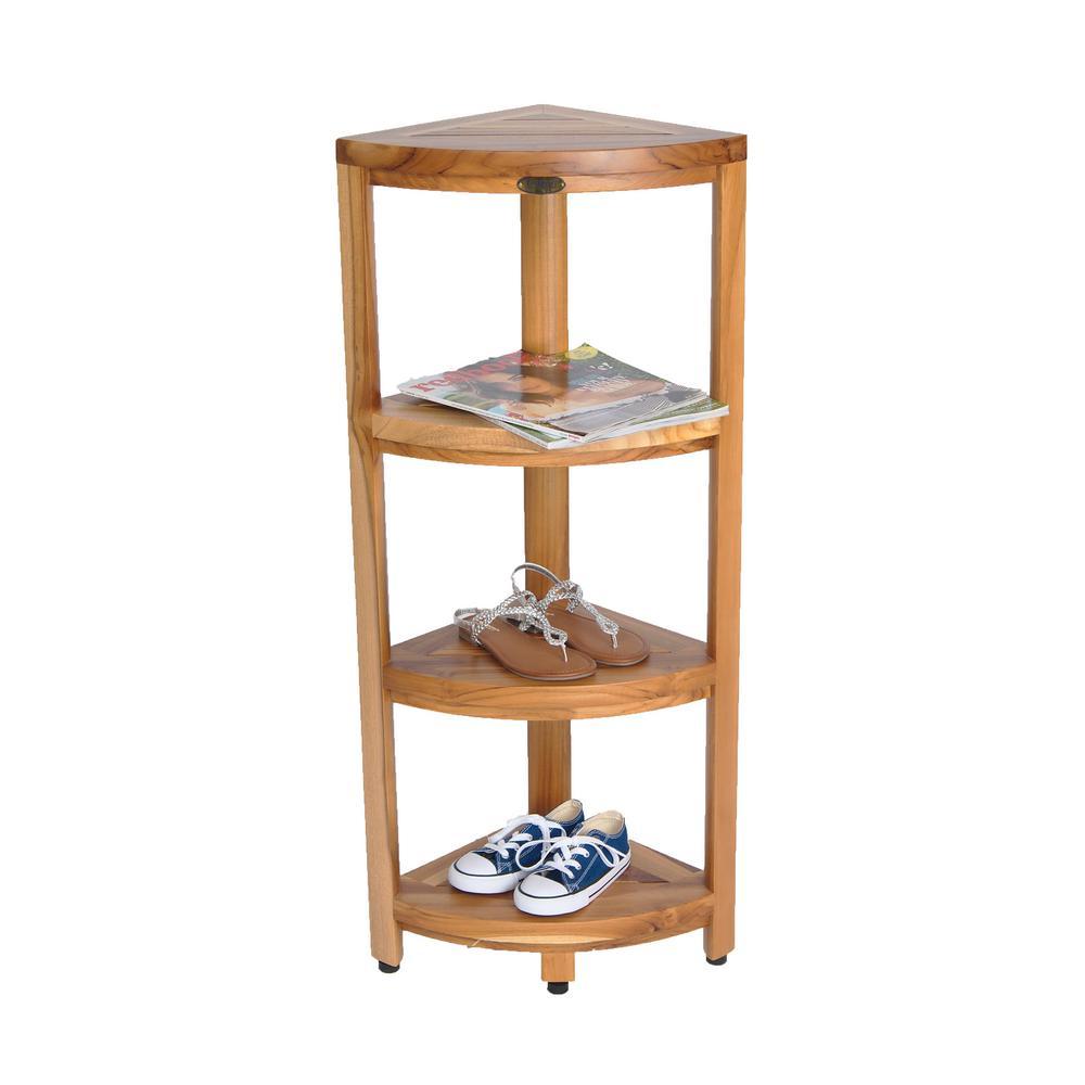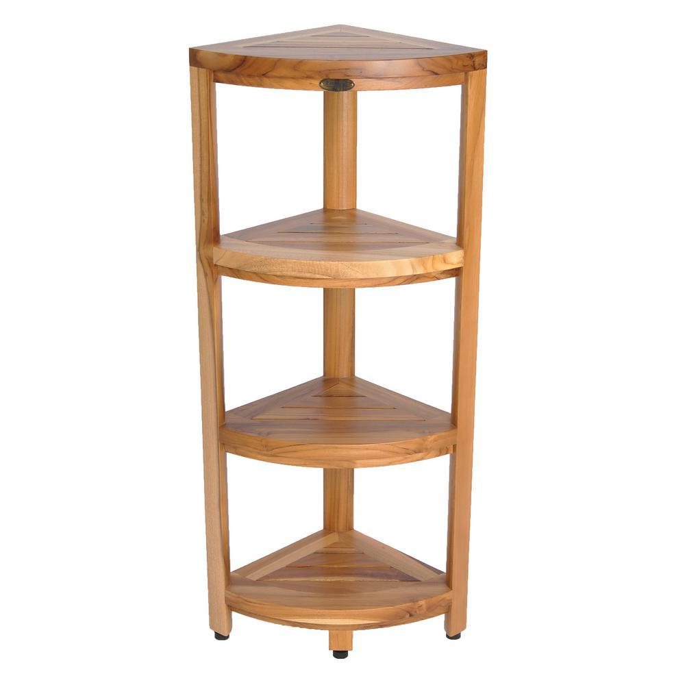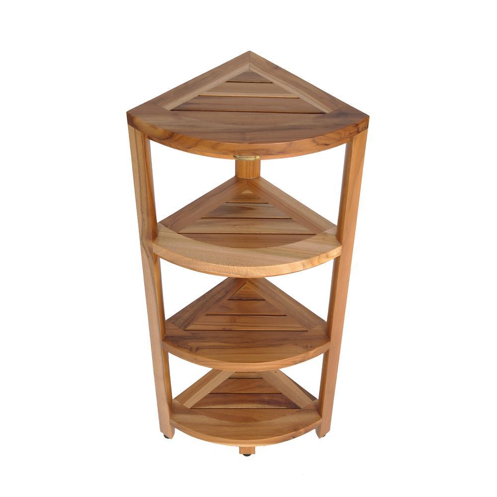 FULLY ASSEMBLED- This compact size of 13 in. L x 13 in. W, x 38 in. H provides a compact footprint that will fit in most tight areas. These corner shelves include foot leveling pads to provide extra flexibility and stability to allow stabilization due to any minor slope, and uneven surfaces, like shower floors. The included standard utility shelf provides extra storage for toiletries or towels. Teak is naturally water, mold, and mildew resistant due to its natural density and high oil content. It has been the wood of choice for hundreds of years of luxury boat builders. This natural resistance has been supplemented by using our proprietary EcoDecors sealer which is a deep penetrating stain with added mold, mildew, and fungus inhibitors. It provides the ability for this teak furniture to be used outdoors as well as indoors. EcoDecors develops unique home decor and furnishings using recycled, reclaimed, and upcycled materials. We focus on using materials that let the natural beauty of teakwood be highlighted, including the natural wood grains and color variations. Our craftspeople use artisan techniques handed down from generation to generation to craft cast off doors, old boats, rail road ties, teak roots, and other material into 1 of a kind functional works of art. To assure our quality we employ our own inspection staff on site and do 100% quality re-inspection in the USA. Made in Indonesia by local crafts people. Sustainably sourced and manufactured.