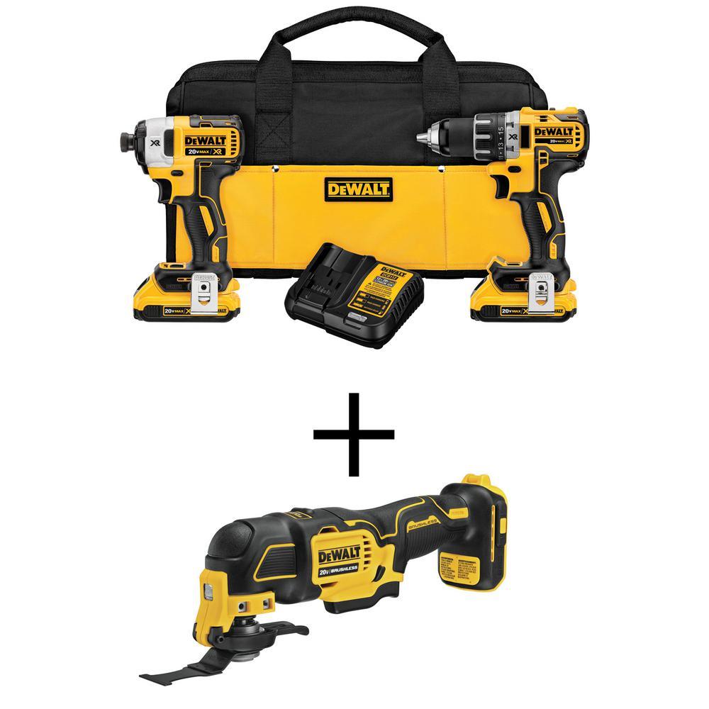 The DEWALT DCK1020D2 Combo Kit is ideal for almost any cutting, drilling or fastening applications. This kit includes a DCD771 drill/driver, DCF885 impact driver, DCE100B blower, DCL040 light, DCR006 Bluetooth speaker, DCS355B oscillating tool, DCG412B grinder, DCS393B circ saw, DCS381B recip saw and DCV580 wet/dry vac. This kit also includes 2 batteries, a charger and (2) contractor bags for portability.