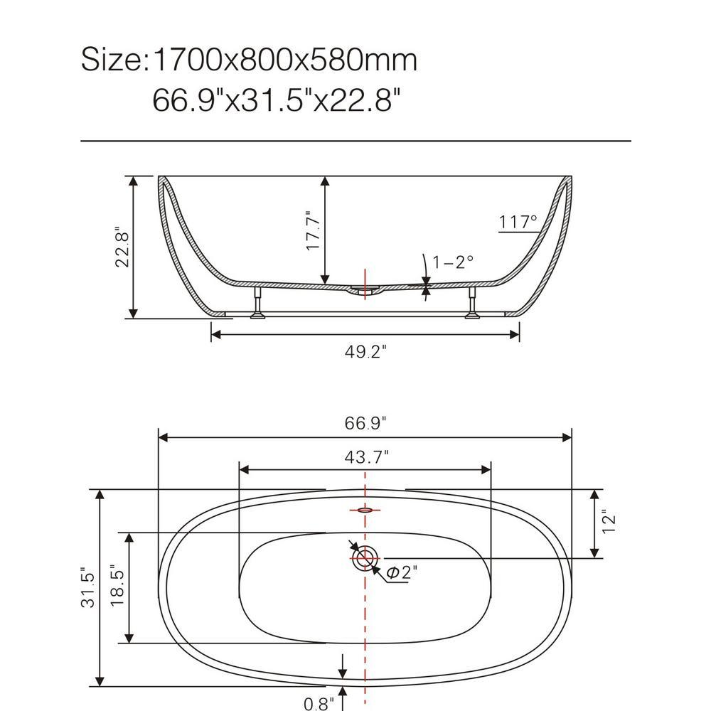 Lille 67 in. Acrylic Flatbottom Freestanding Bathtub in White