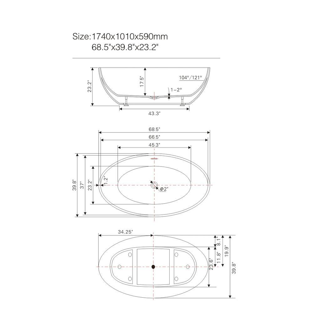 Amiens 69 in. Acrylic Flatbottom Freestanding Bathtub in White