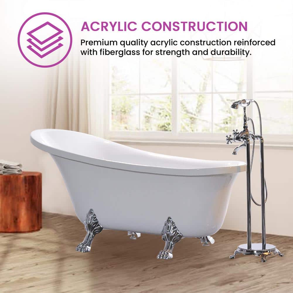Vanity Art Pantin 69 in. Acrylic Clawfoot Freestanding Bathtub in White