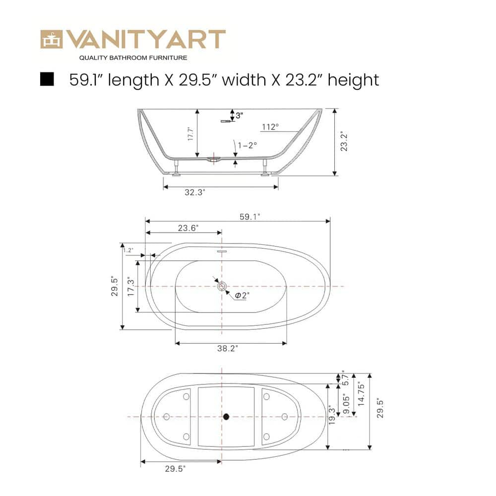 Indulge in the ultimate relaxation experience with the Vanity Art Bayonne 59-inch Freestanding Acrylic Bathtub. This stunning soaking tub, crafted from high-quality acrylic, combines modern elegance and practicality to elevate any bathroom design.