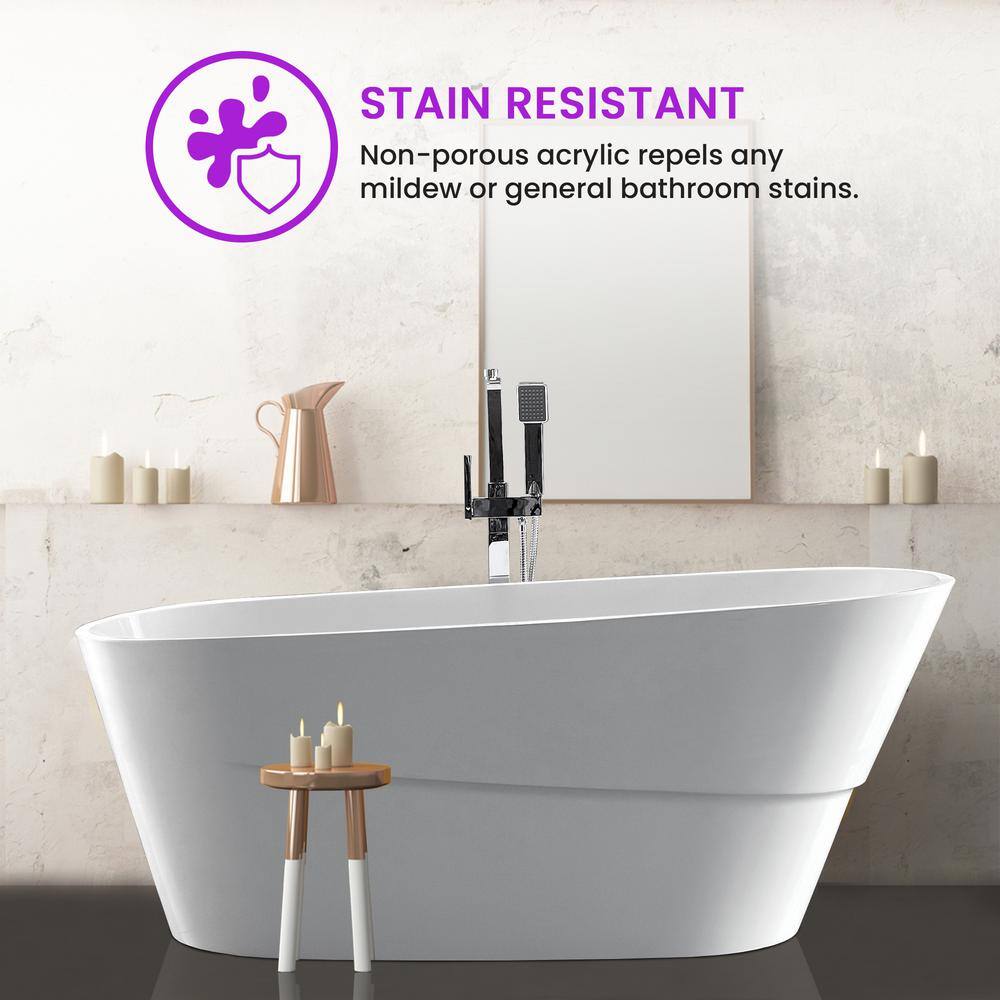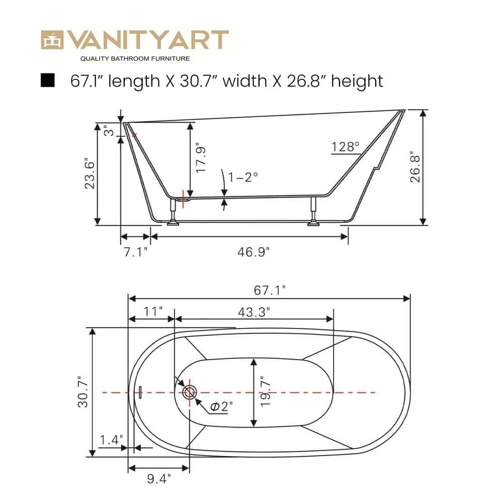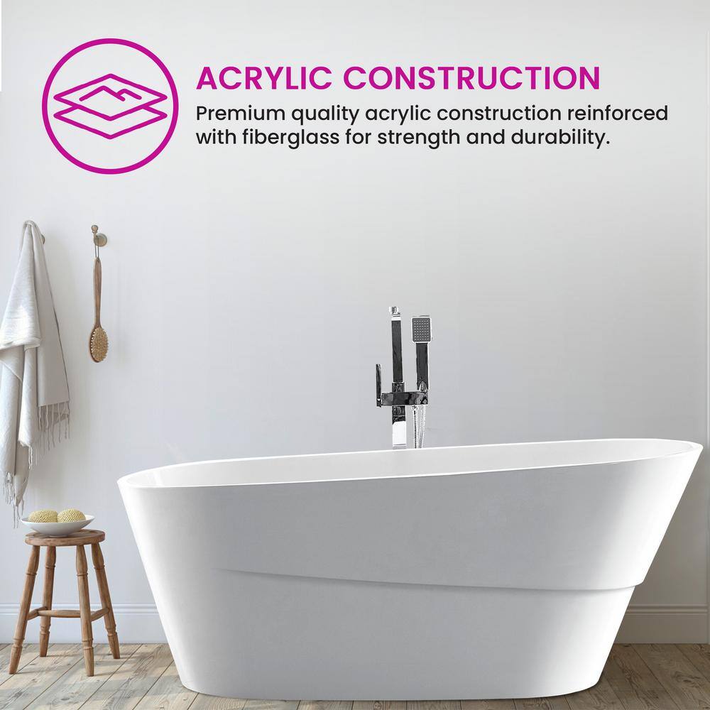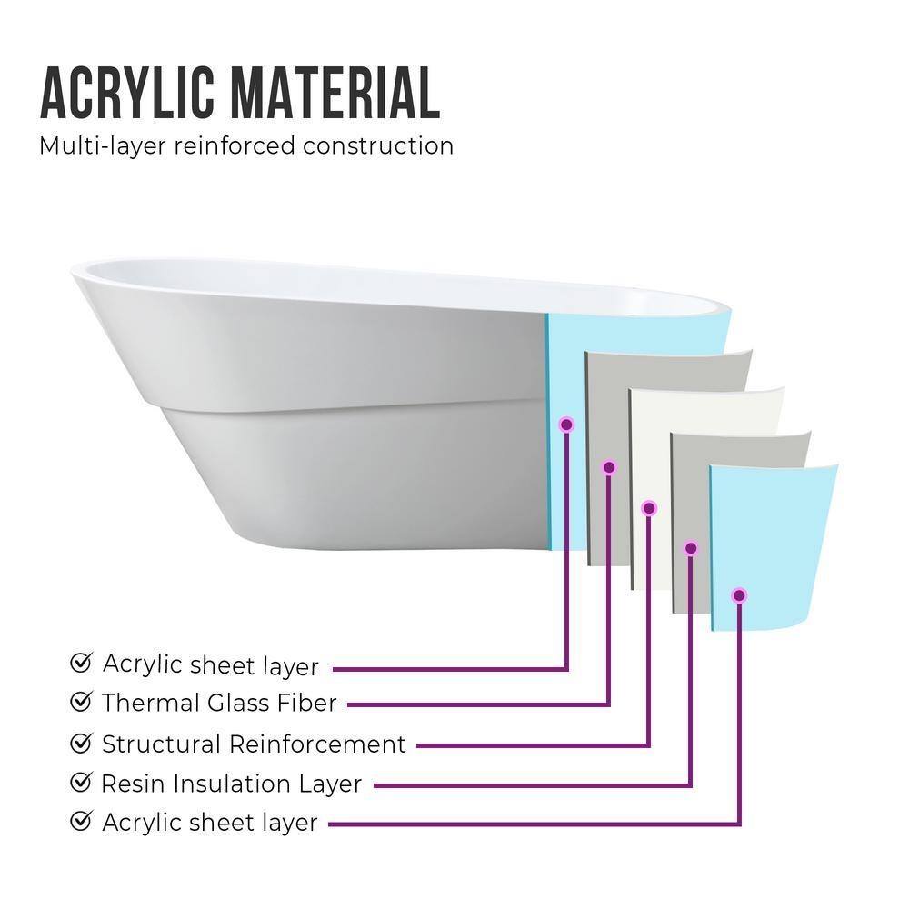 Immerse in luxury with Vanity Art's Nanterre 67" Acrylic Freestanding Bathtub. Crafted from premium high-quality acrylic, this tub offers a sleek, durable design and features a self-leveling base, promising superior stability and an effortless, relaxing bathing experience.