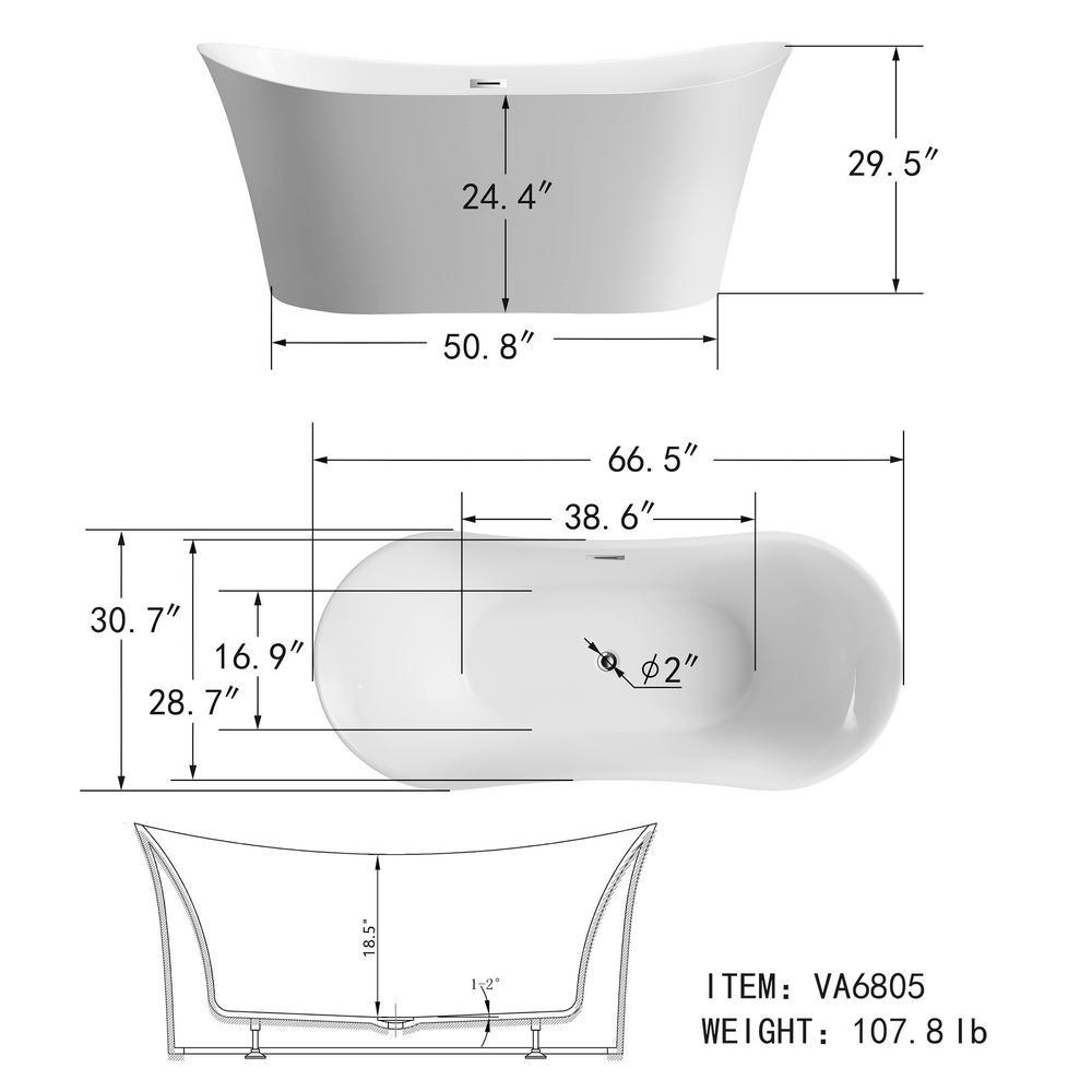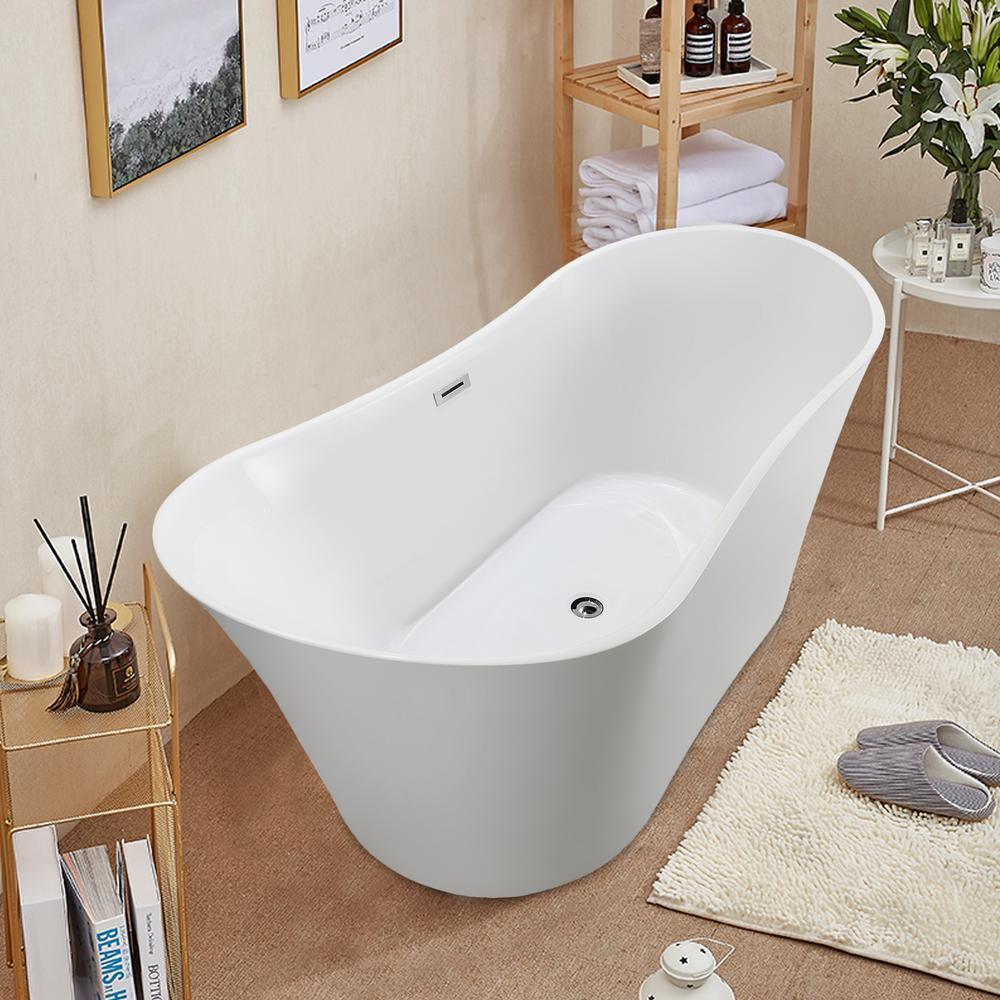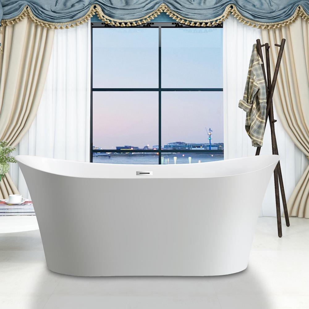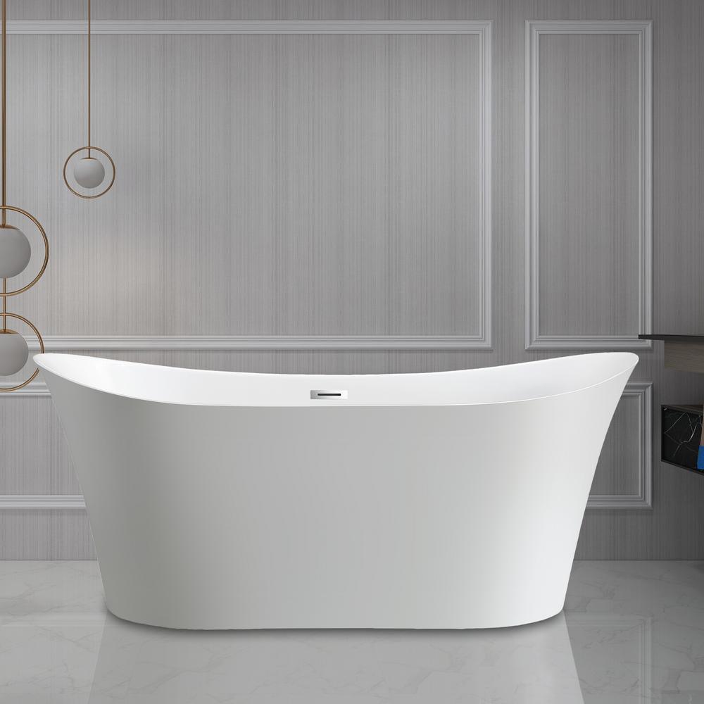 Relax and unwind in this luxurious Calais 67 in. freestanding soaking bathtub. The white finish complete the contemporary design of this soaking tub that would make a great addition to any bathroom. It is UPC certified and includes a chrome overflow, chrome pop-up drain, leveling legs and a flexible drain hose.
