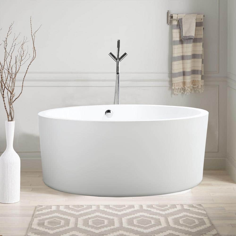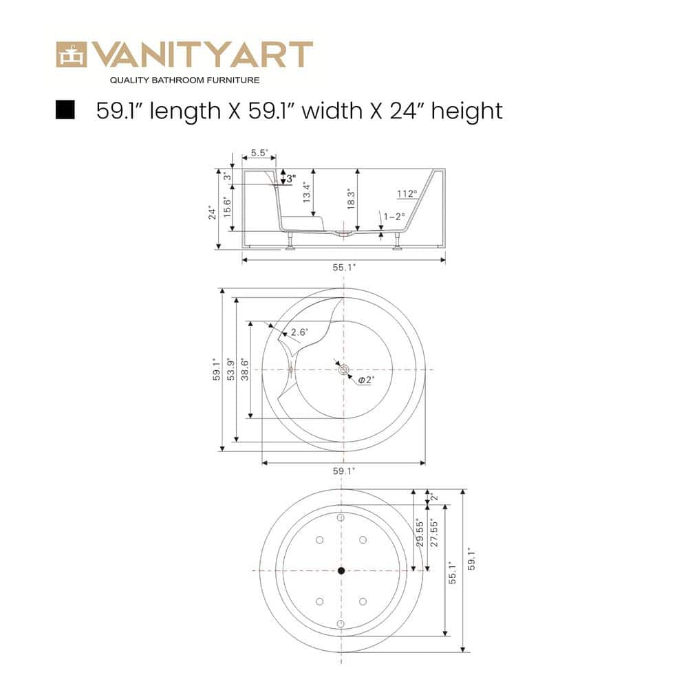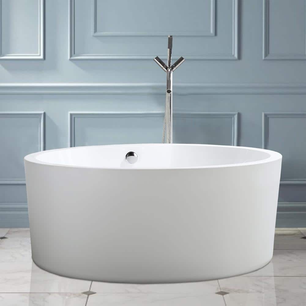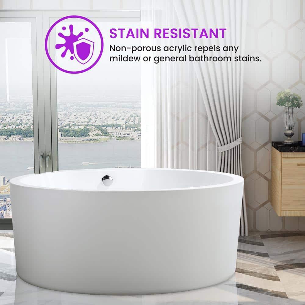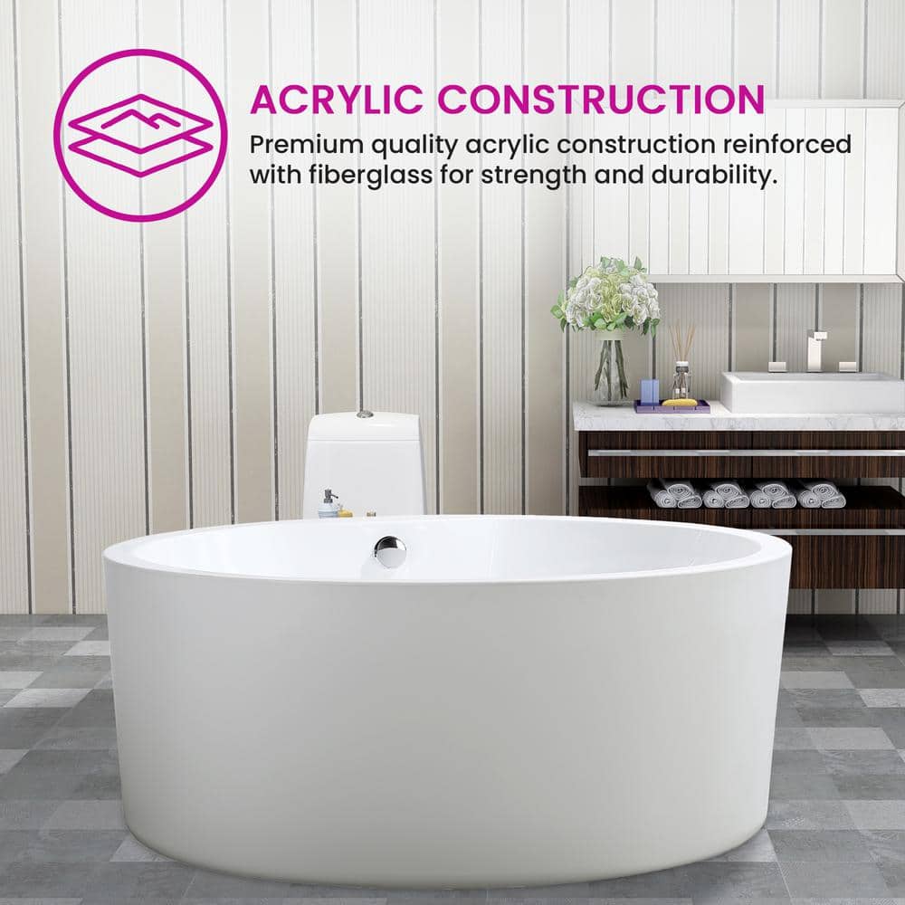 Transform your bathroom into a tranquil oasis with the Vanity Art Troyes 59 in. freestanding acrylic bathtub. Designed for one, this ergonomic tub offers high quality and durability with its 100% acrylic construction. Its contemporary design with gentle sloping lines provides a luxurious soak while enhancing any bathroom decor.