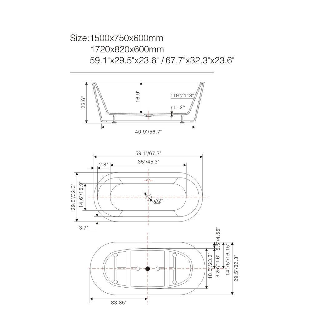 Lorient 59 in. Acrylic Flatbottom Freestanding Bathtub in White