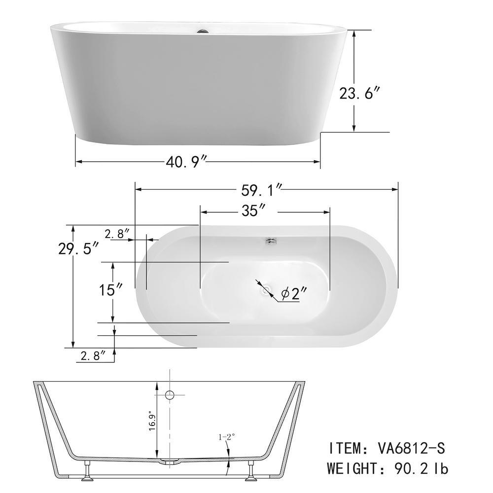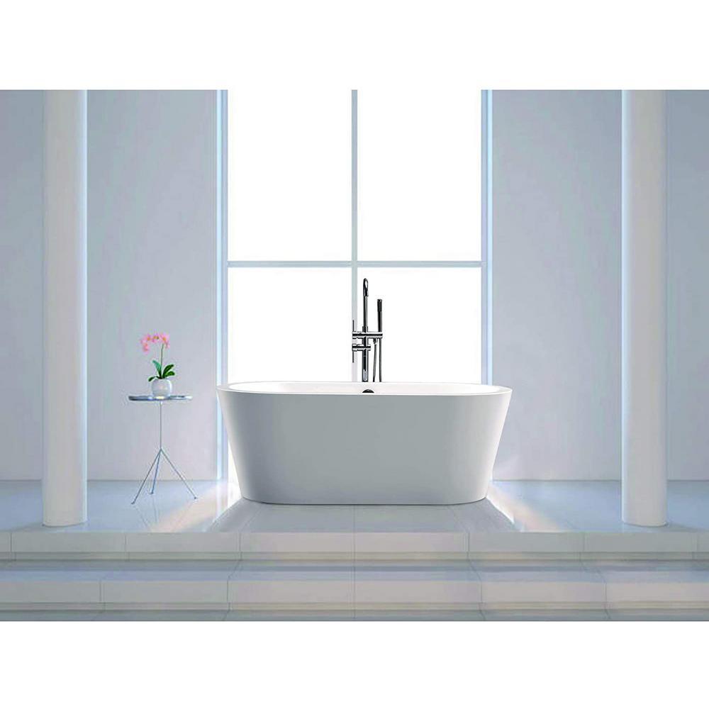 Relax and unwind in this luxurious Lorient 59 in. freestanding soaking bathtub. The white finish complete the contemporary design of this soaking tub that would make a great addition to any bathroom. It is UPC certified and includes a chrome overflow, chrome pop-up drain, leveling legs and a flexible drain hose.