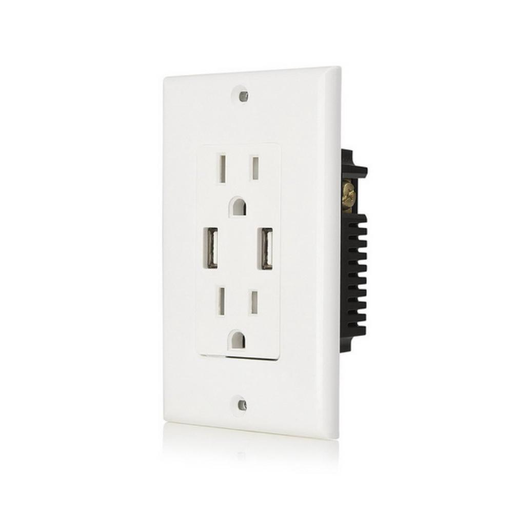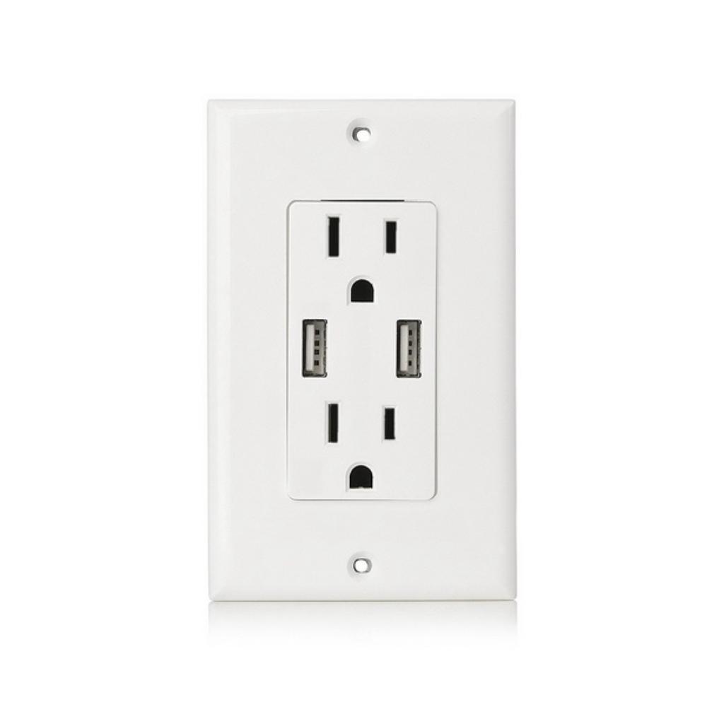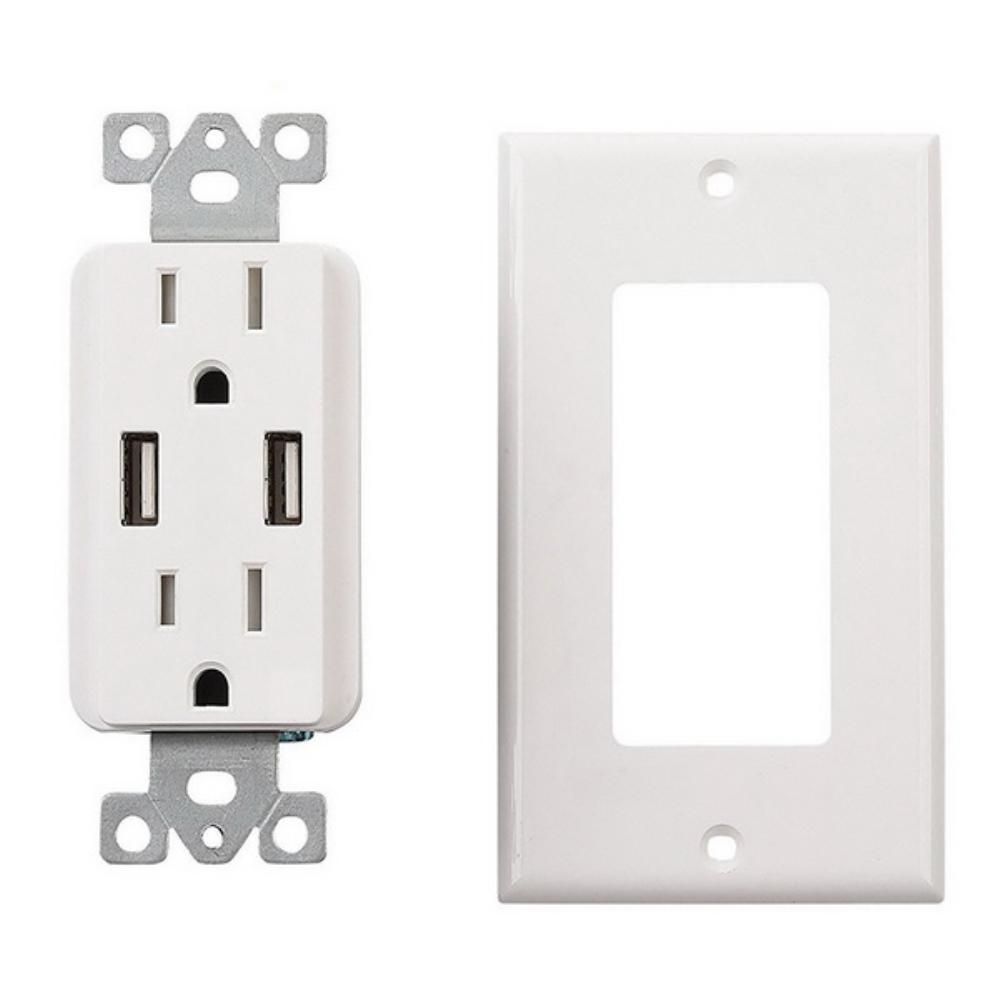 Decor receptacle with two high power USB ports. This is the real highest power USB charger on the market with total of 4.8 Amp/24-Watt capacity. The receptacle allows the fastest charging time possible for your smart phone or tablet.