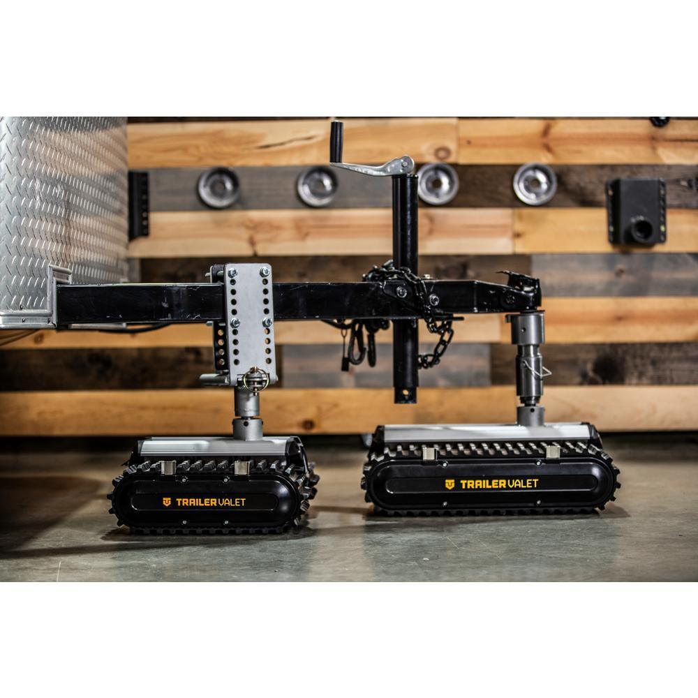 Regular price $2,499.00The Trailer Valet RVR3 is a remote-controlled electric trailer mover made by Trailer Valet to take the chore out of moving your trailer. The RVR3 has a towing capacity of 3,500 lbs (trailer weight) and 350 lbs (tongue weight). The RVR3 hooks up to your trailer frame with a low tower bracket and allows you to bring your trailer directly to and from your hitch vehicle. With the RVR3, you can now maneuver your RV or boat in and out of a tight spot with the press of a button. The remote control has a long range and can be operated safely from up to 40 ft. away which allows you to walk the perimeter of your trailer, keeping your key pivot points intact. The RVR Series includes the RVR5 (rated up to 5,500 lbs) and the RVR9 (rated up to 9,000 lbs). All three RVR models come with a rechargeable lithium-ion battery that can give you up to 30-minutes of runtime while in constant use. The RVR3 has a compact design: Measuring at 18.5 in. x 16.5 in. x 10 in. and weighs 48 lbs. and includes 2 high torque planetary motors to drive most single axle trailers and some dual axle trailers. Aluminum Body: Allows for a lightweight design and a lifetime of corrosion resistance. Heavy-Duty Treads: Caterpillar Treads that give you more traction over different surfaces. Wirelessly Controlled: Easily and safely operate from any angle up to 40 ft. away with the push of a button. The RVR3 can push a trailer up a 5% grade; never pull your unit up any kind of incline.