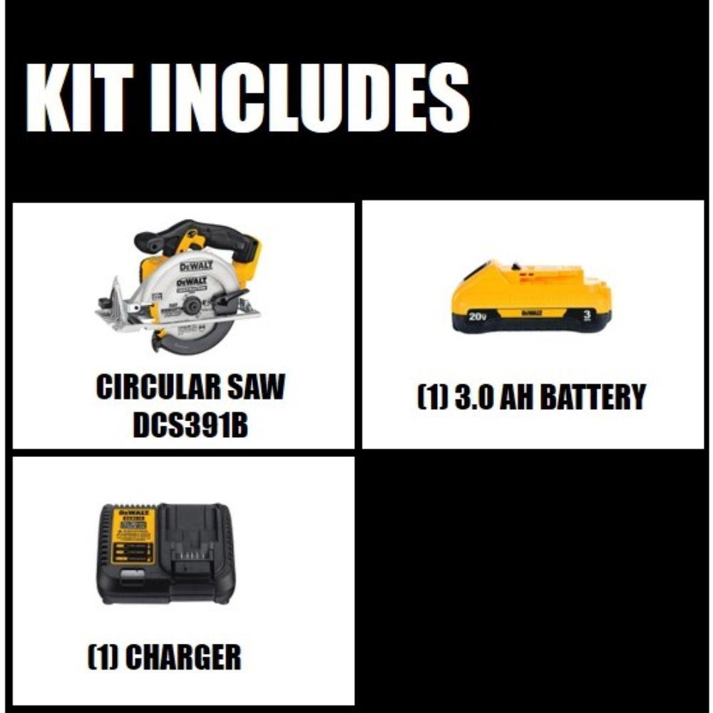 • DCS391B: includes 6-1/2 in. fast wood-cutting 18-tooth carbide-tipped blade