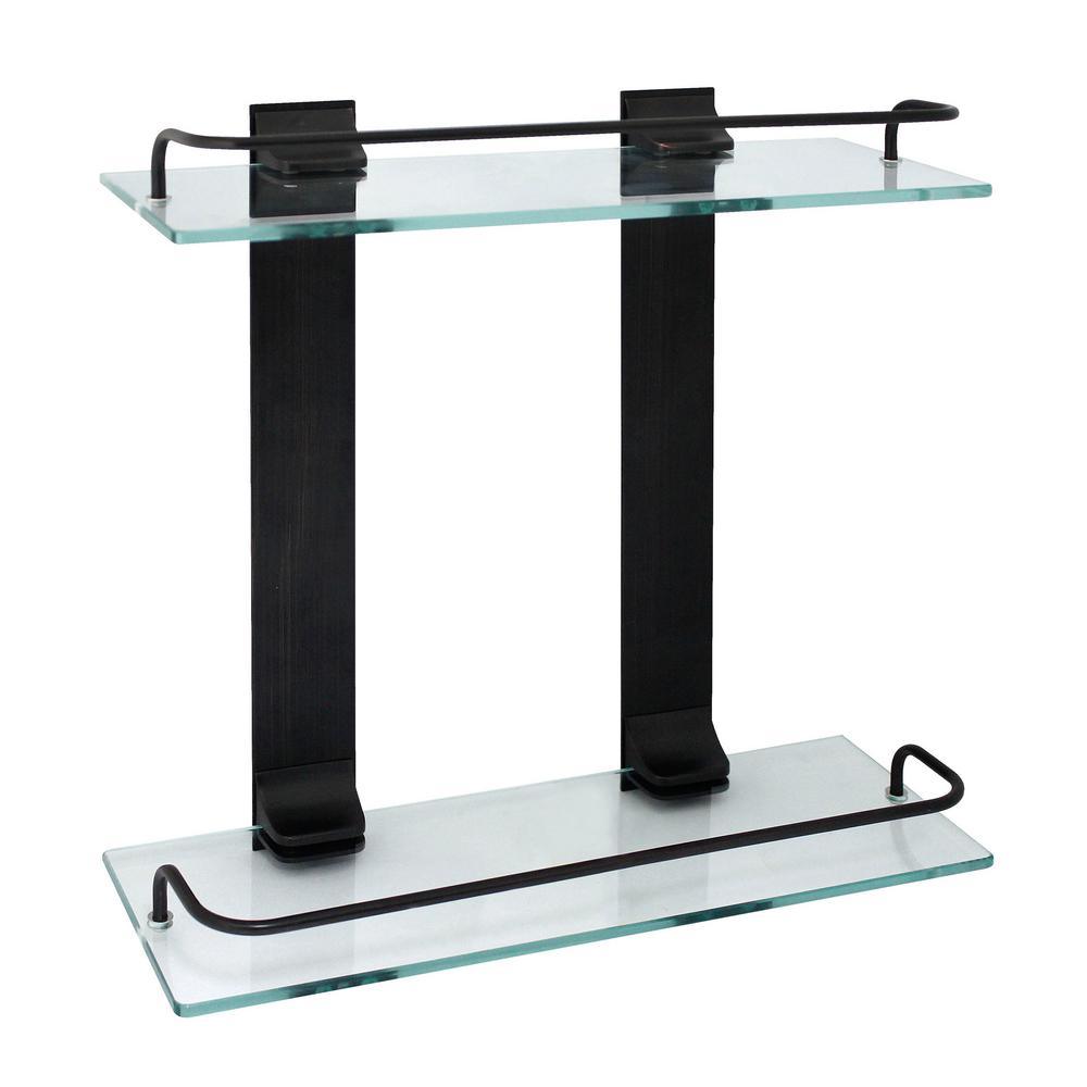 • 13.75 in. W Double Glass Wall Shelf with Pre-Installed Rails in Rubbed Bronze is the perfect solution for your style and your home