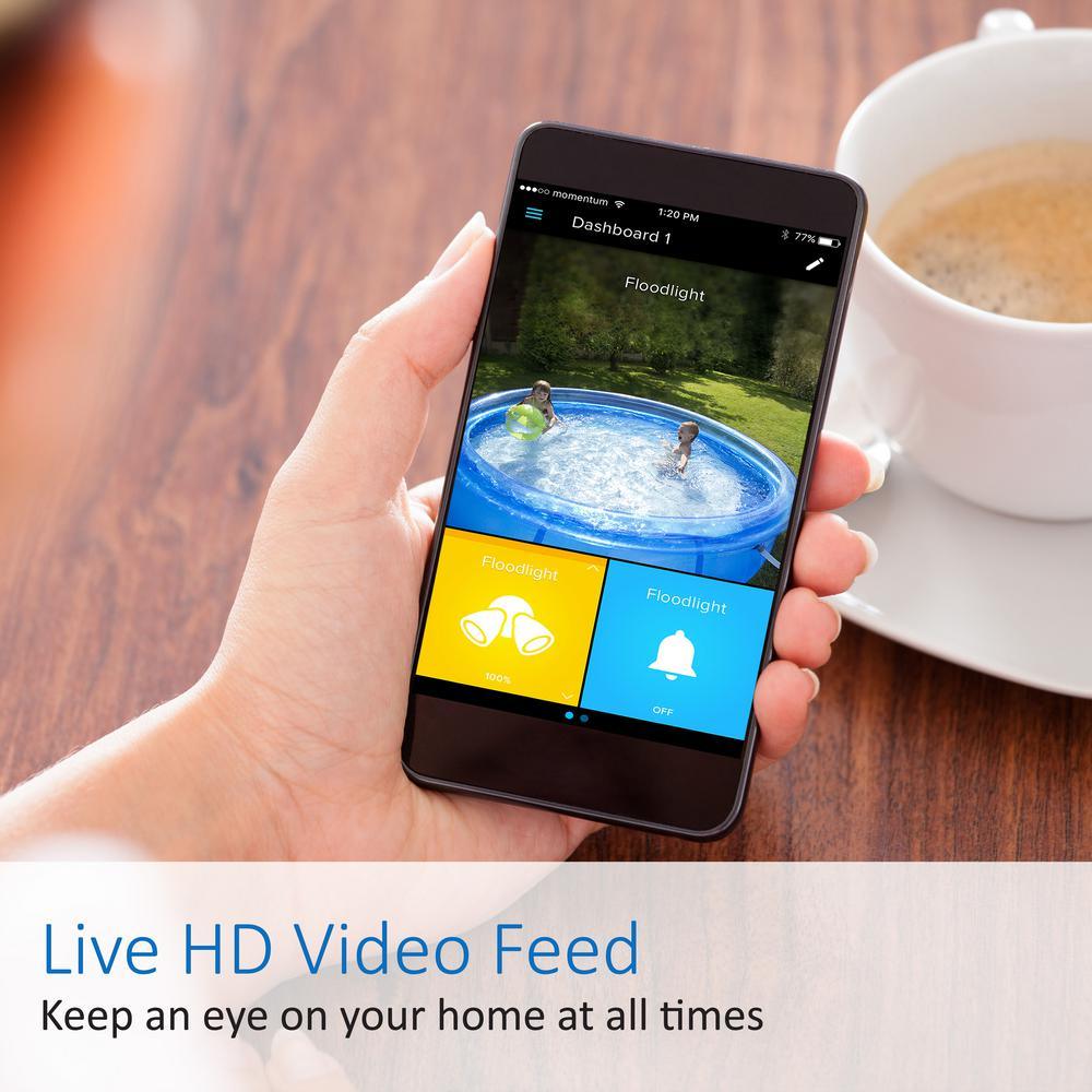 The Momentum Aria Floodlight is the next step in innovation with its live 1080p HD video feed and smart phone capability. With a click of a button have full view of your front yard with the built-in camera and 270° capability. The mobile alerts and motion detection keep you connected to your home at all times to ensure maximum security. Built to make life easier, the Momentum Aria Floodlight will ensure a lifetime of convenience and luxury.