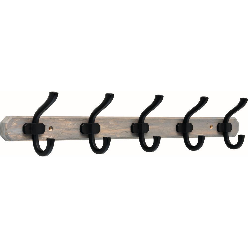 24 in. Graywash and Matte Black Hook Rack