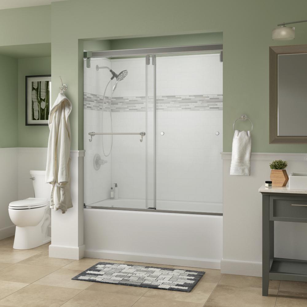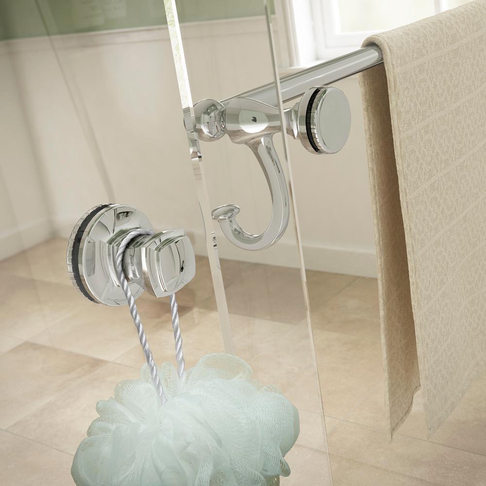 Whether you’re looking for a moderate DIY project or working on a bathroom remodel, upgrading your bathroom with a new sliding shower door is easy with the Delta 1-2-3 custom sliding shower door program. Delta’s custom glass shower door program offers 1000s of design combinations by choosing your glass shower panels, shower door track, and shower door handles to build a unique, personalized glass shower door. Clean, sleek and modern, the Mod bathtub door track in chrome features a soft close system paired with a reversible flat track, and minimal metal components, for the perfect balance of form and function. Show off your beautiful shower with premium, heavy 3/8 in. ANSI certified tempered glass shower panels, featuring Delta Spot Guard with a completely transparent look for a glass shower door that is both simple and elegant.The Portman sliding shower door handle with knobs features a convenient towel bar with hooks for extra bathroom storage and two interior knobs for extra showering space in a traditional design silhouette that beautifully displays timeless elegance.