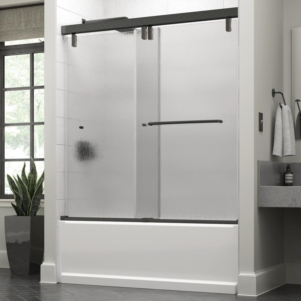 Delta sliding glass bathtub panels feature Delta Spot Guard glass treatment for easy cleaning, to resist water spots and hardwater stains, and help reduce soap scum and limescale buildup when properly maintained