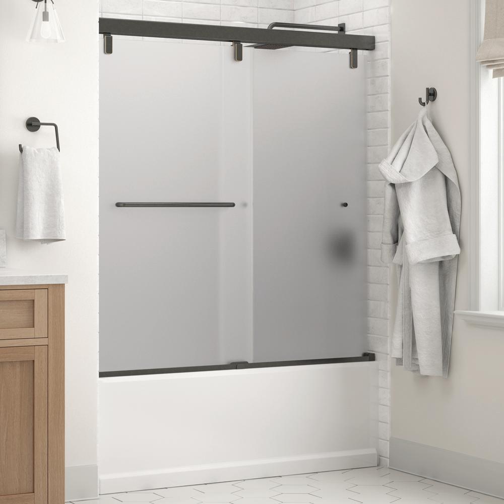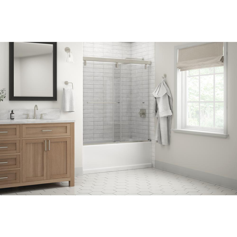 Whether you’re looking for a moderate DIY project or working on a bathroom remodel, upgrading your bathroom with a new sliding shower door is easy with the Delta 1-2-3 custom sliding shower door program. Delta’s custom glass shower door program offers 1000s of design combinations by choosing your glass shower panels, shower door track, and shower door handles to build a unique, personalized glass shower door. Clean, sleek and modern, the Mod bathtub door track in nickel features a soft close system paired with a reversible flat track, and minimal metal components, for the perfect balance of form and function. Show off your beautiful shower with standard 1/4 in. ANSI certified tempered glass shower panels, featuring Delta Spot Guard with a completely transparent look for a glass shower door that is both simple and elegant. The Simplicity sliding shower door handle with knobs features a convenient towel bar for extra bathroom storage and two interior knobs for extra showering space in a simple design silhouette that beautifully combines form and function.