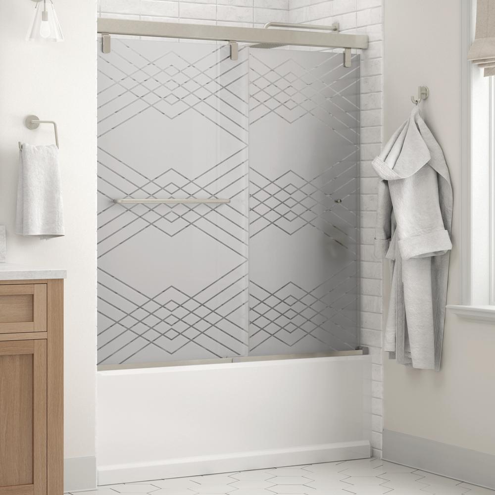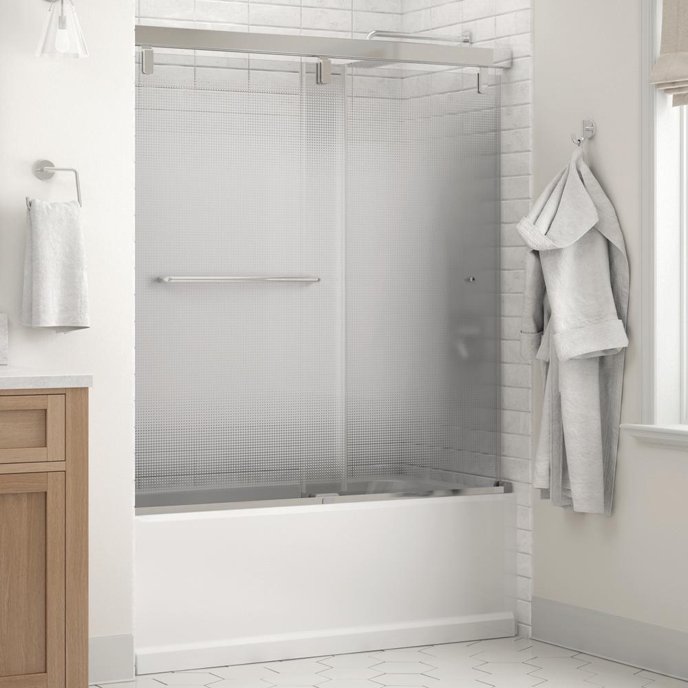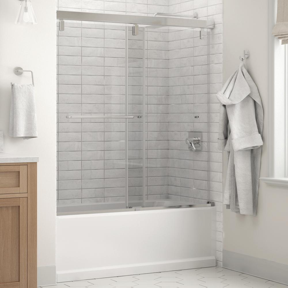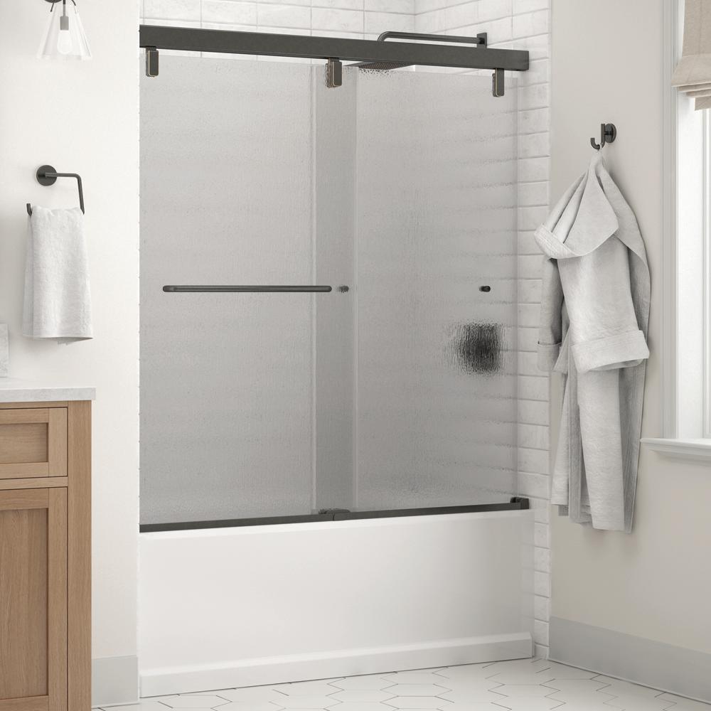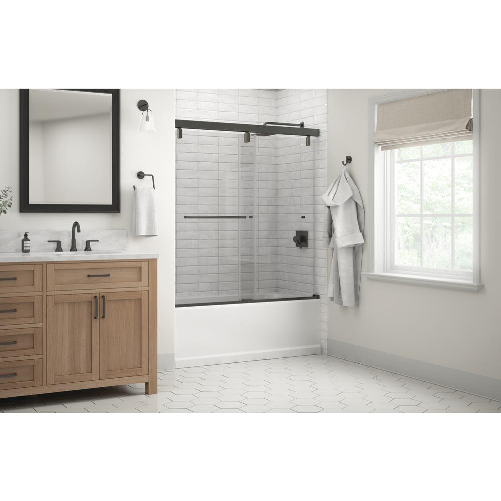 Whether you’re looking for a moderate DIY project or working on a bathroom remodel, upgrading your bathroom with a new sliding shower door is easy with the Delta 1-2-3 custom sliding shower door program. Delta’s custom glass shower door program offers 1000s of design combinations by choosing your glass shower panels, shower door track, and shower door handles to build a unique, personalized glass shower door. Clean, sleek and modern, the Mod bathtub door track in bronze features a soft close system paired with a reversible flat track, and minimal metal components, for the perfect balance of form and function. Show off your beautiful shower with standard 1/4 in. ANSI certified tempered glass shower panels, featuring Delta Spot Guard with a completely transparent look for a glass shower door that is both simple and elegant. The Simplicity sliding shower door handle with knobs features a convenient towel bar for extra bathroom storage and two interior knobs for extra showering space in a simple design silhouette that beautifully combines form and function.