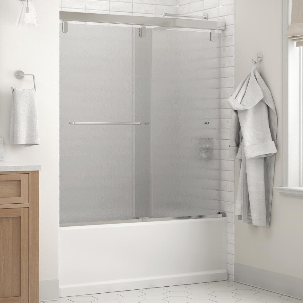 Mod sliding bathtub doors can be opened from left or right with full by-pass (both panels slide) design of track and glass panels