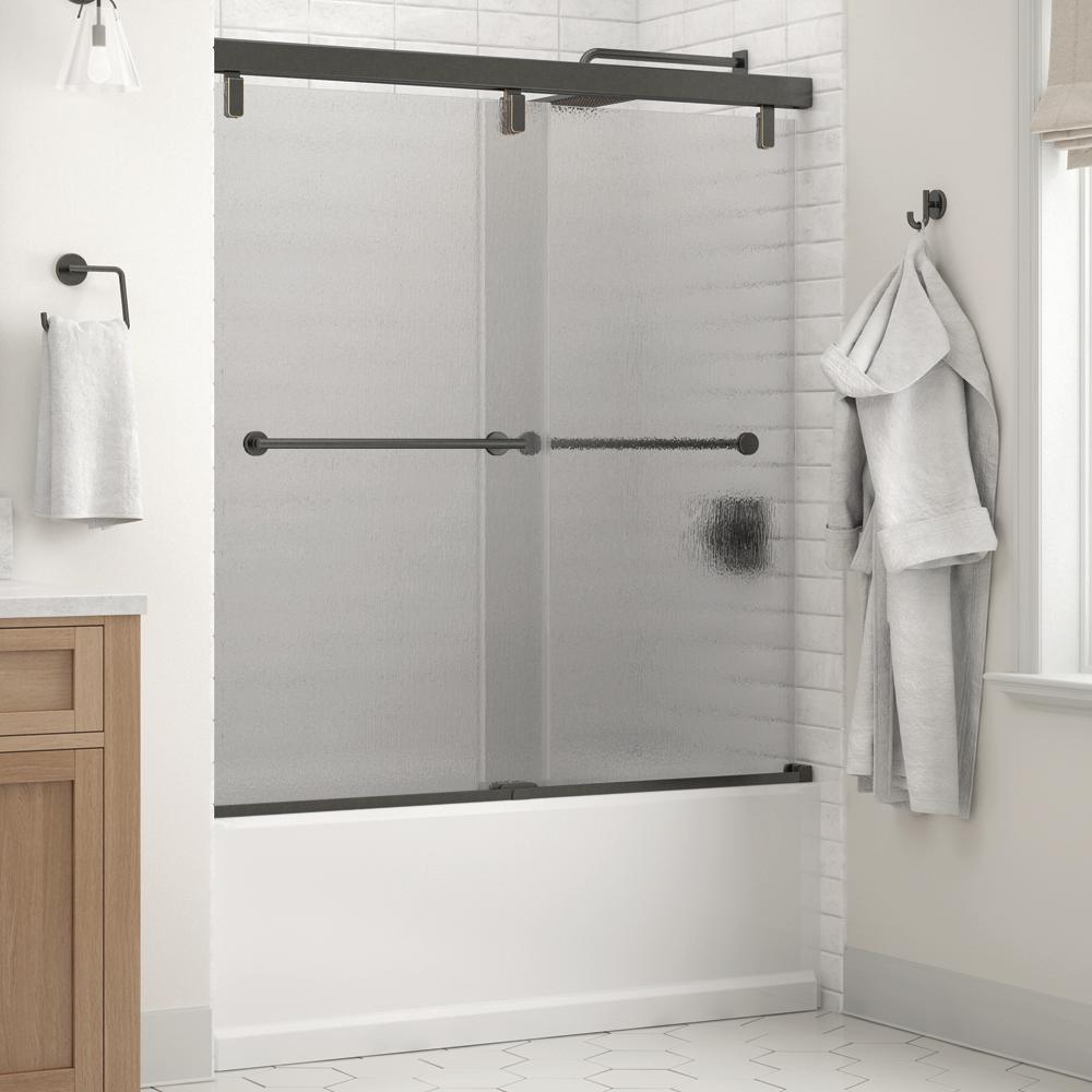 Whether you’re looking for a moderate DIY project or working on a bathroom remodel, upgrading your bathroom with a new sliding shower door is easy with the Delta 1-2-3 custom sliding shower door program. Delta’s custom glass shower door program offers 1000s of design combinations by choosing your glass shower panels, shower door track, and shower door handles to build a unique, personalized glass shower door. Clean, sleek and modern, the Mod bathtub door track in nickel features a soft close system paired with a reversible flat track, and minimal metal components, for the perfect balance of form and function. Show off your beautiful shower with standard 1/4 in. ANSI certified tempered glass shower panels, featuring Delta Spot Guard with a completely transparent look for a glass shower door that is both simple and elegant. The Everly sliding shower door handles in nickel feature two convenient towel bars for extra bathroom storage in a transitional design silhouette that beautifully combines contemporary and classic qualities.