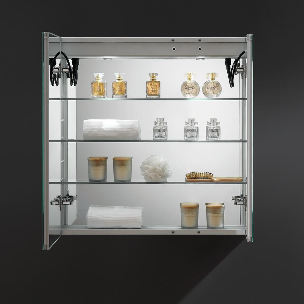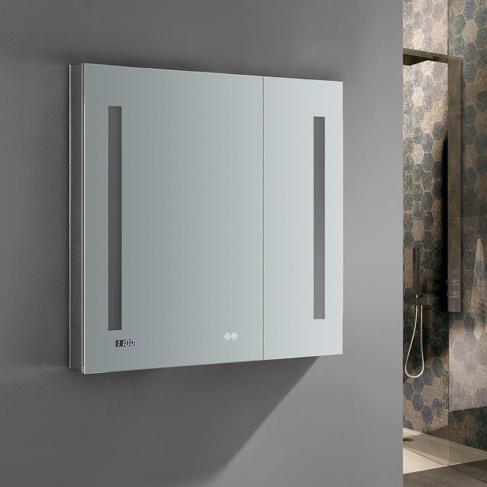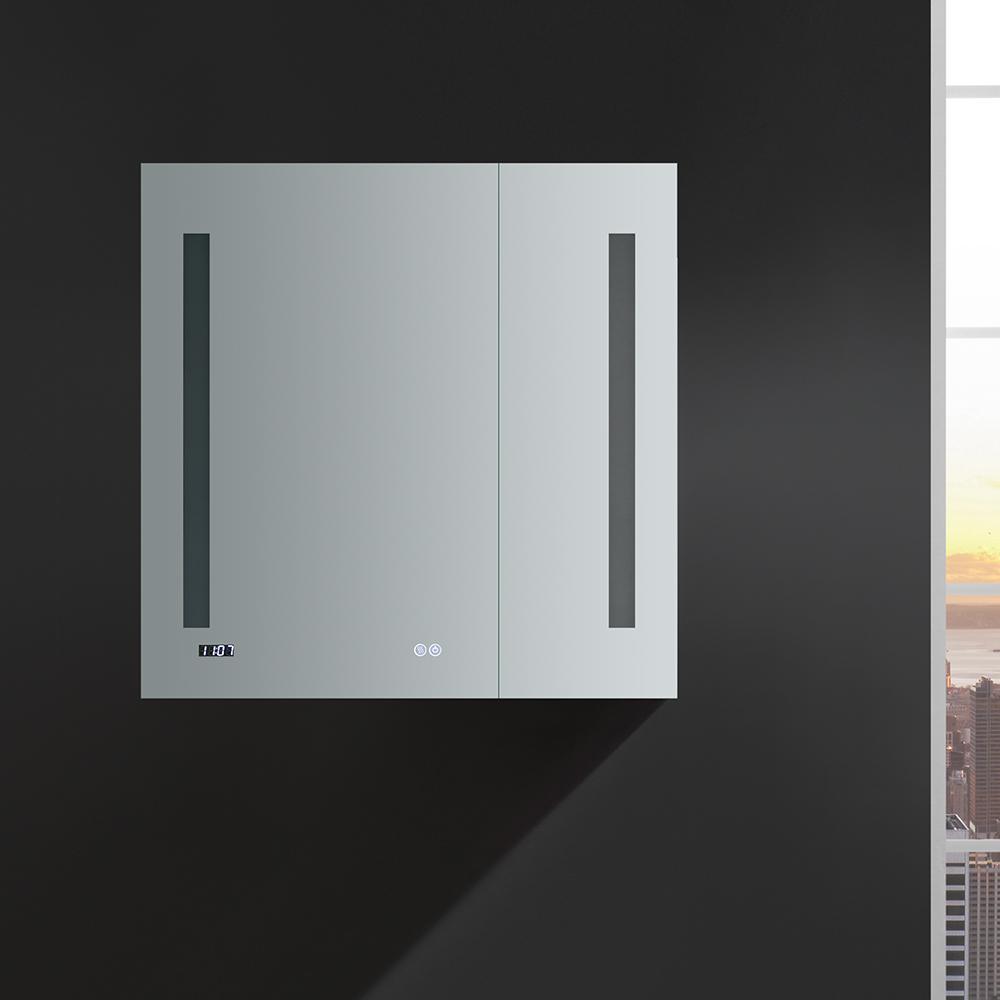 Tiempo 30 in. W x 30 in. H Recessed or Surface Mount Medicine Cabinet with LED Lighting and Mirror Defogger