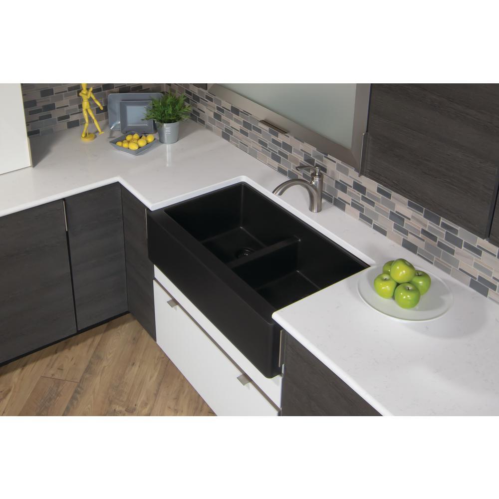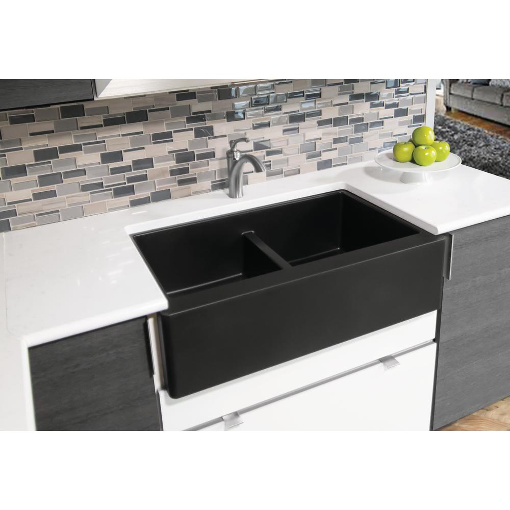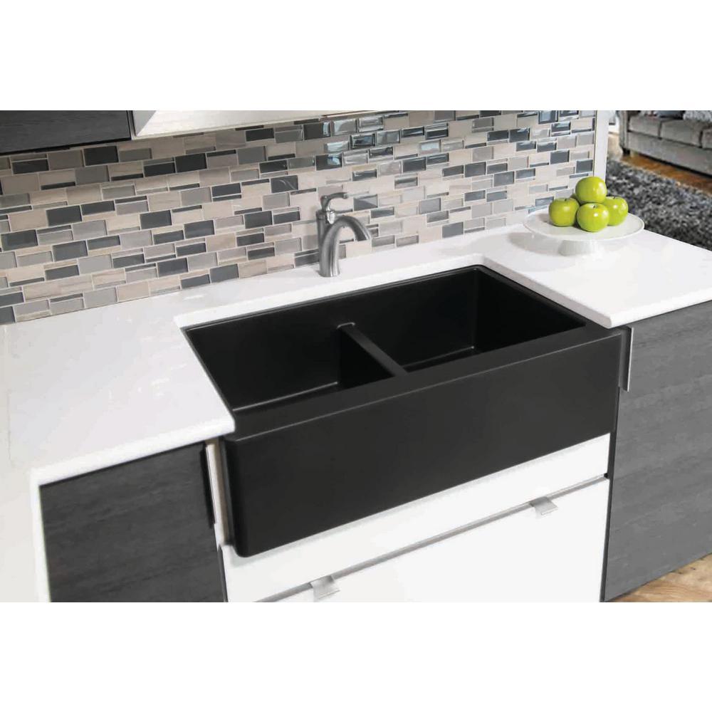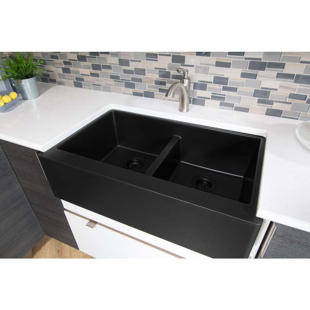 Farmhouse Apron Front Quartz Composite 34 in. Double Bowl Kitchen Sink in Black
