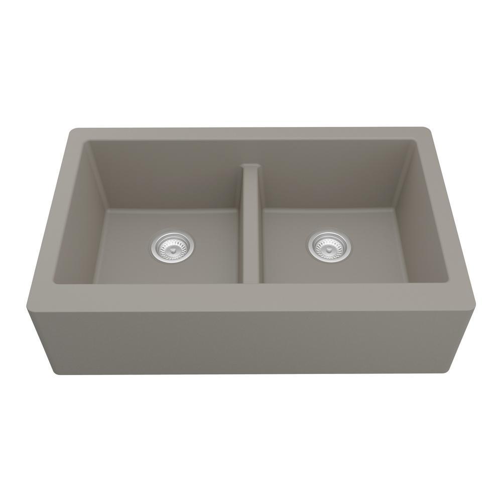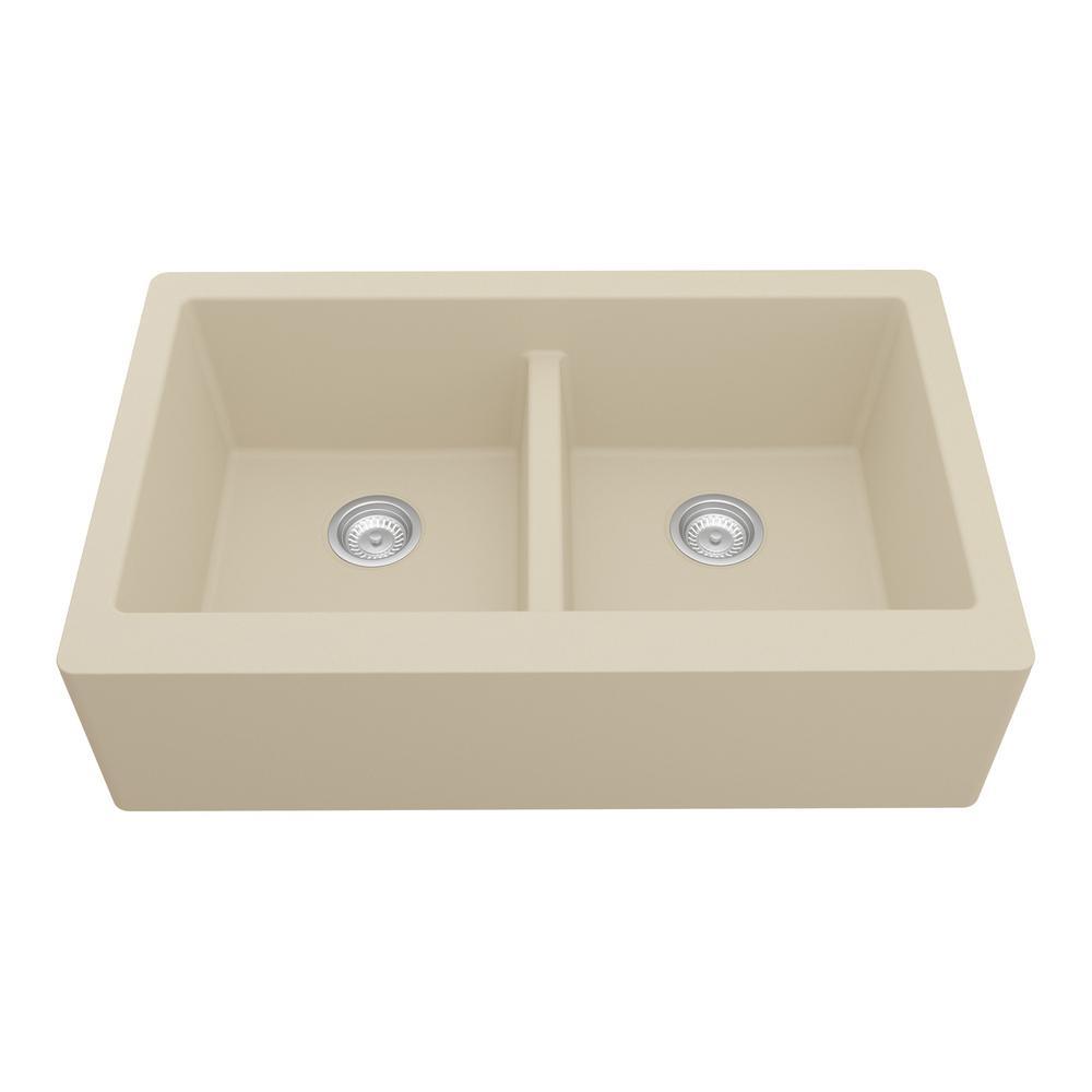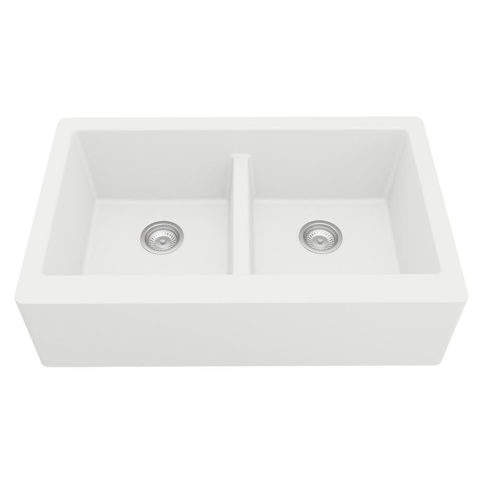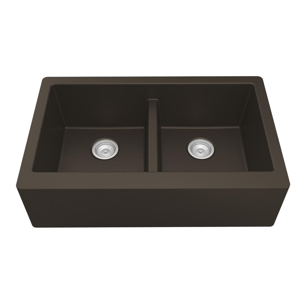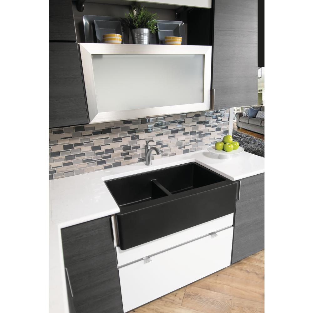 Farmhouse Apron Front Quartz Composite 34 in. Double Bowl Kitchen Sink in Black