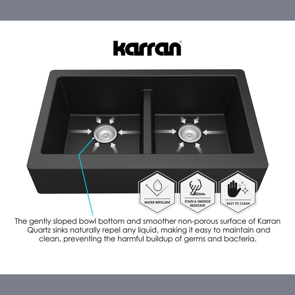A kitchen sink should be practical, but it should also be beautiful. This apron front design blends function and form perfectly and will look stunning in your new kitchen. Karran quartz sinks are designed and engineered to be extremely durable. Our superior manufacturing process combines natural quartz crystals with high-performance, UV-stabilized acrylic resins. Karran quartz sinks stand up to your toughest kitchen tasks and are available in 6 rich color options.