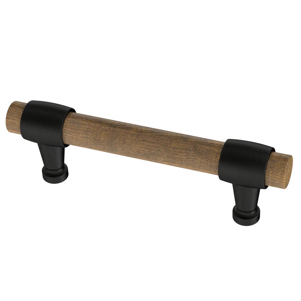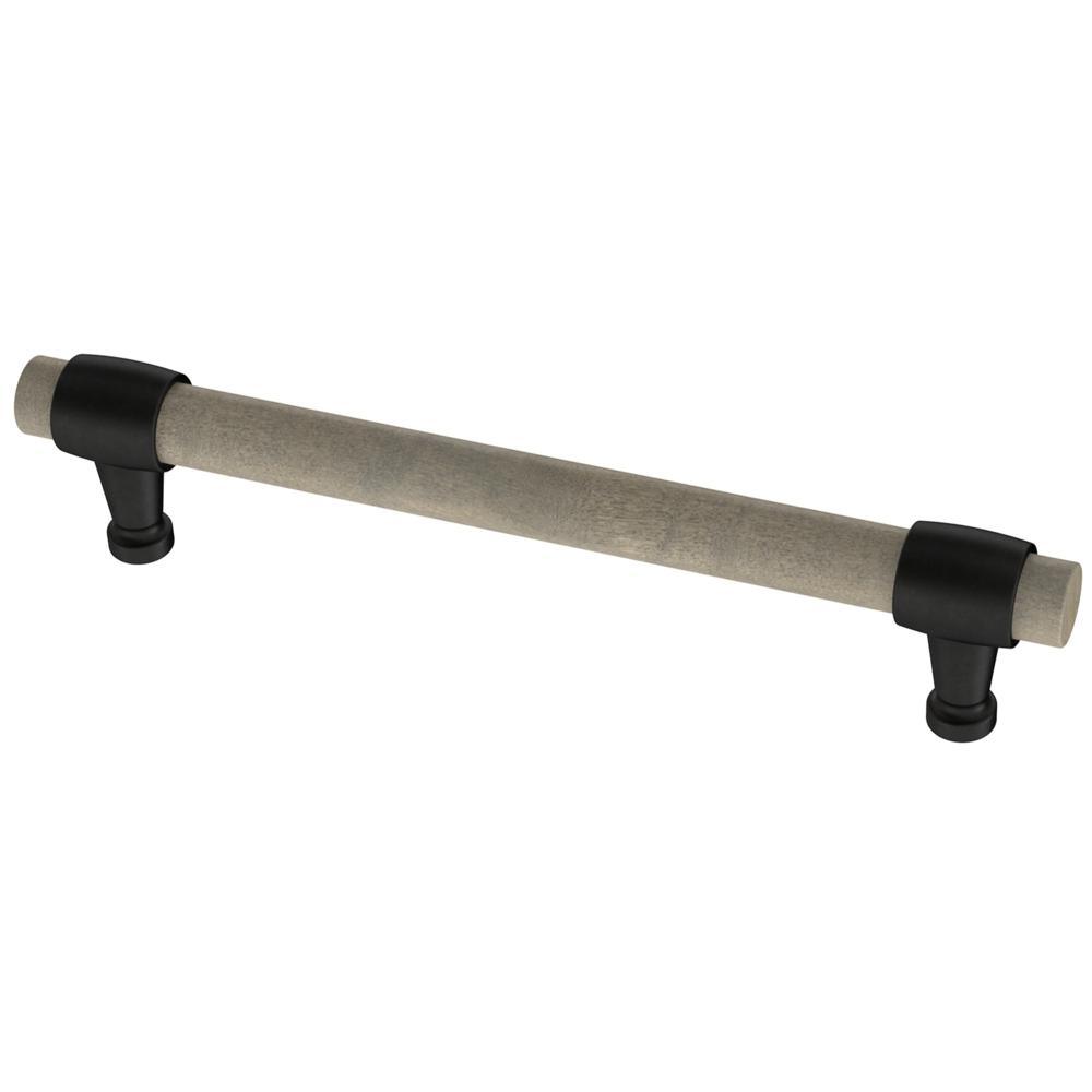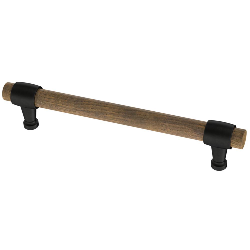 Modern 6-5/16 in. (160mm) Center-to-Center Matte Black with Rustic Pine Wood Drawer Pull