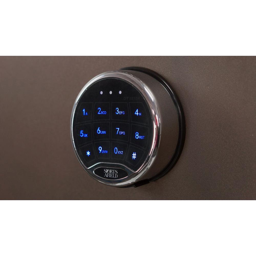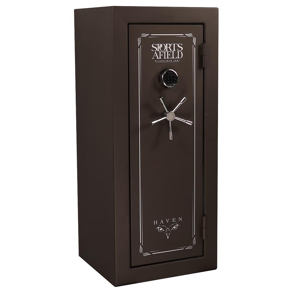 The Sports Afield Haven Series SA5925H gun safe allows you to secure up to 24 long guns and 4 handguns, ammunition and valuables. The configurable interior is easily adaptable for all type of valuables and the deluxe door organizer maximizes storage. Our exclusive Zero-Sag, steel reinforced top shelf adds to the safes flexibility, allowing even heavier items to be stored at eye level. The electronic lock with Easy Touch keypad is programmable, allowing for ease of access. Our proprietary Triple Seal technology protects from smoke, fire and water. Backed by a lifetime, no hassle warranty.
