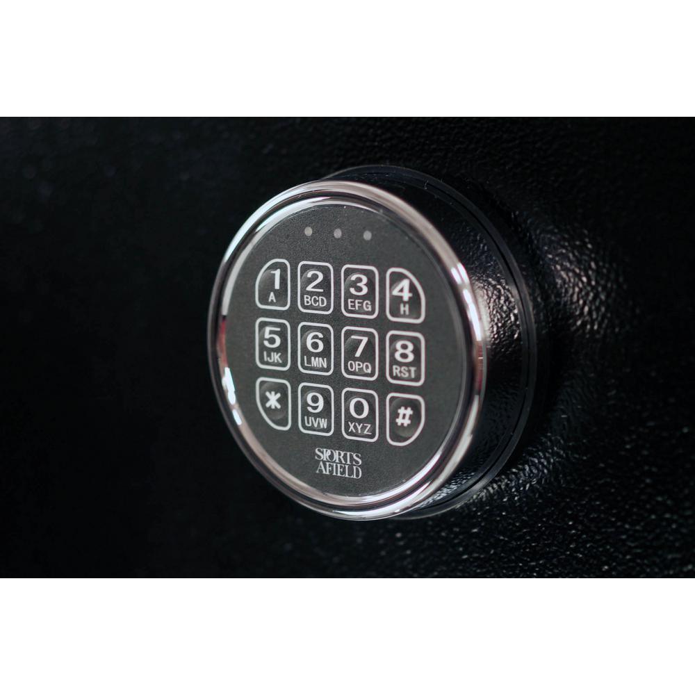 The Sports Afield Preserve Series SA5924P gun safes allow you to secure up to 24 long guns and 4 handguns, ammunition, and valuables. The configurable interior is easily adaptable for all type of valuables, and the delux door organizer maximizes storage. Our exclusive Zero-Sag, steel reinforced top shelf adds to the safes flexibility, allowing even heavier items to be stored at eye level. The electronic lock with Easy Touch keypad is programable, allowing for ease of access. Our proprietary Triple Seal technology protects from smoke, fire and water. Backed by a lifetime, no hassle warranty. California DOJ Approved.