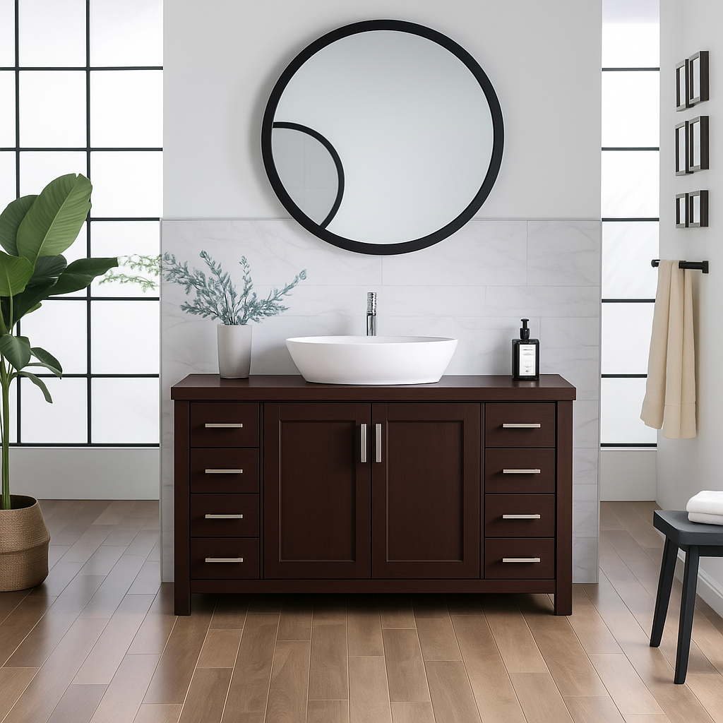 • Ample Storage: Includes 8 full-extension drawers and a spacious cabinet for organizing bathroom essentials.