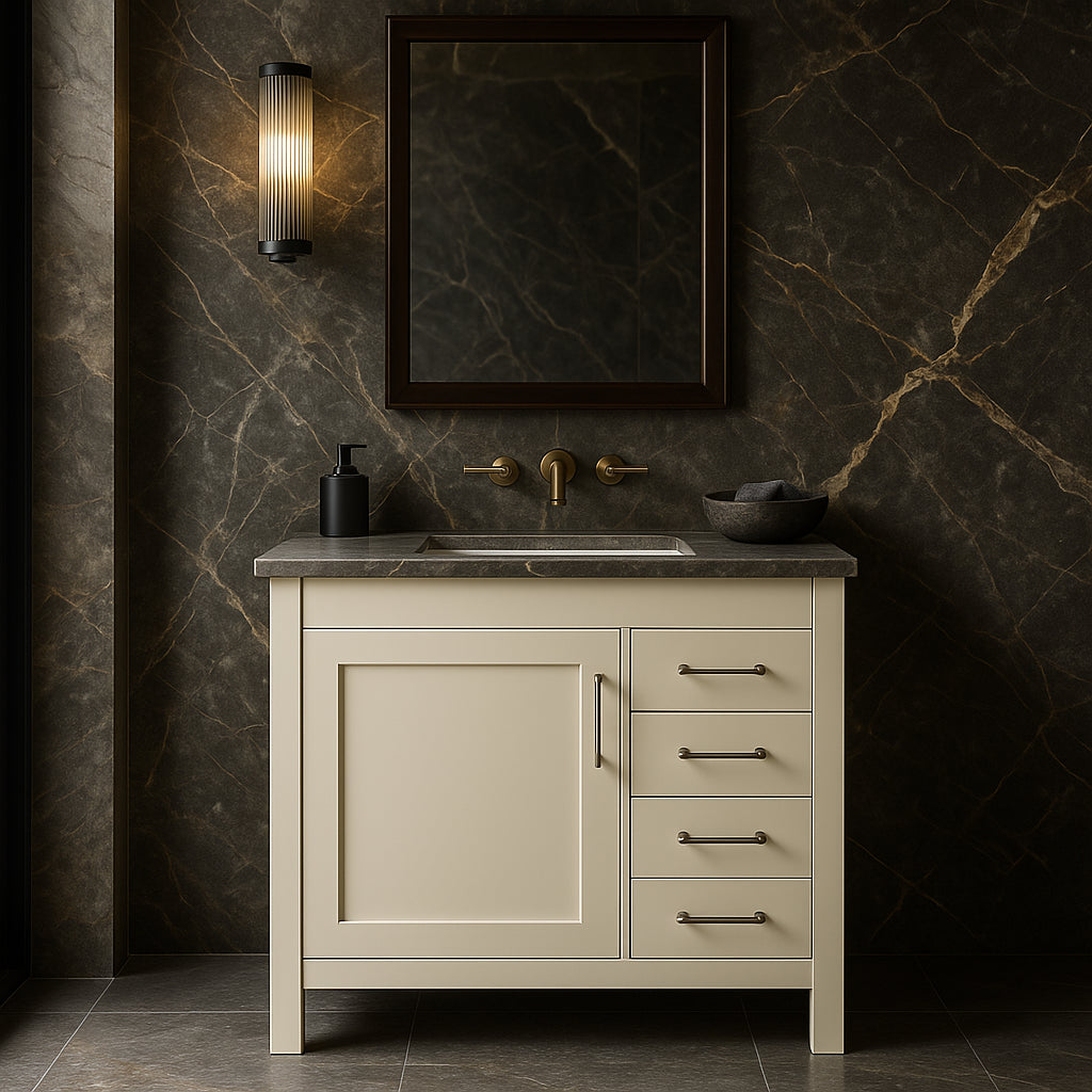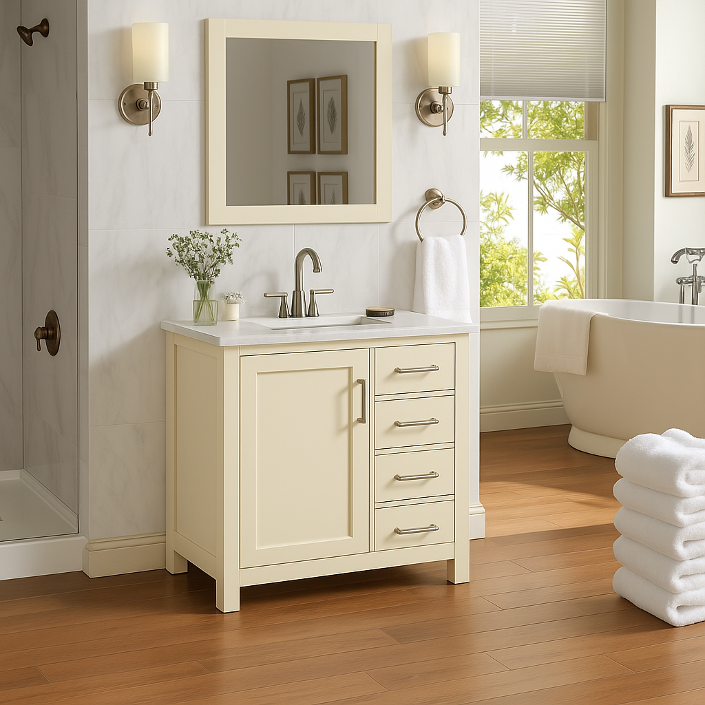 • Ample Storage: Includes 4 full-extension drawers and a spacious cabinet for organizing bathroom essentials.