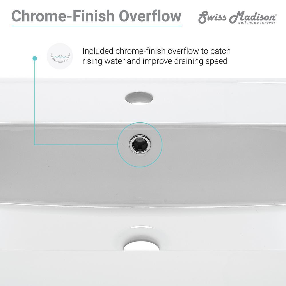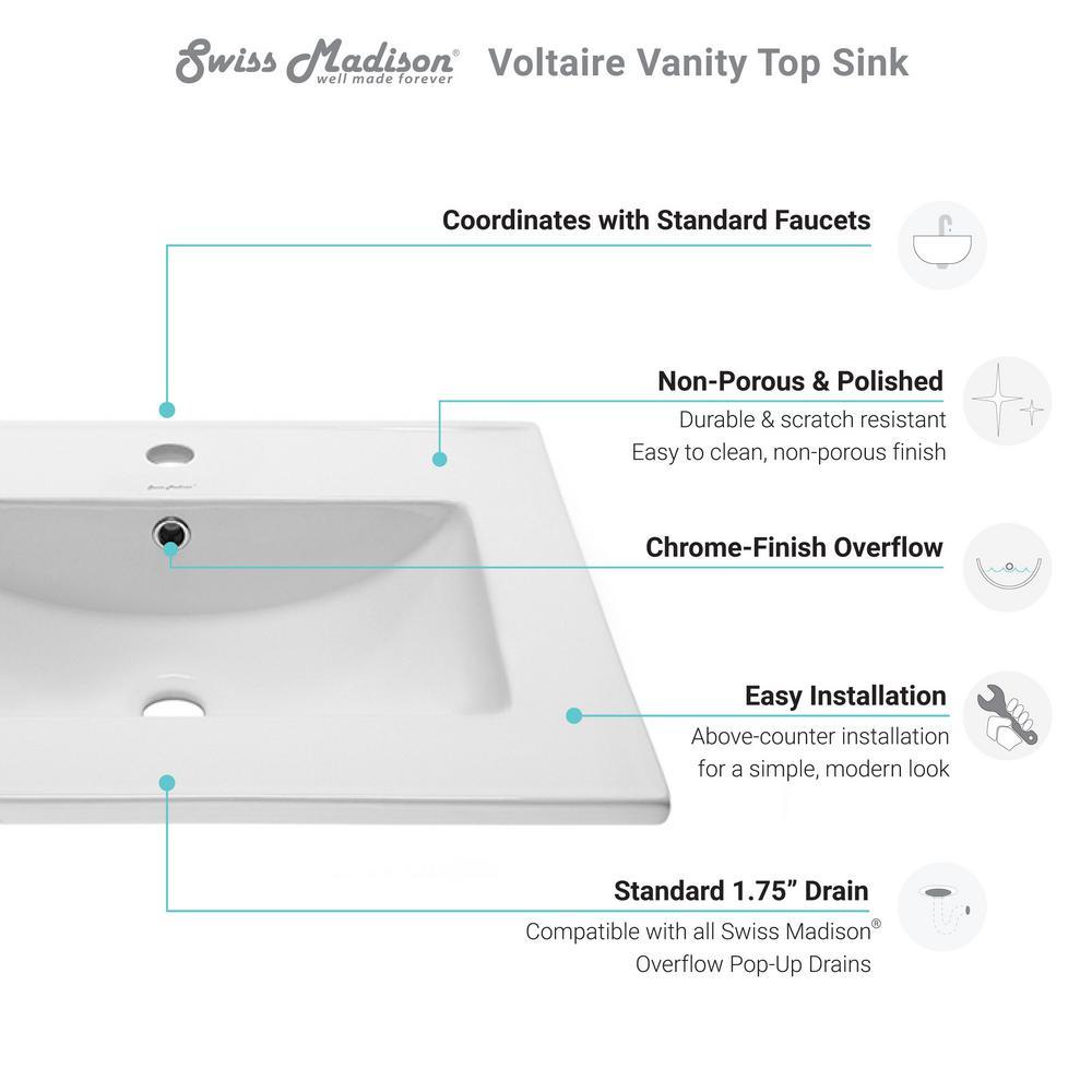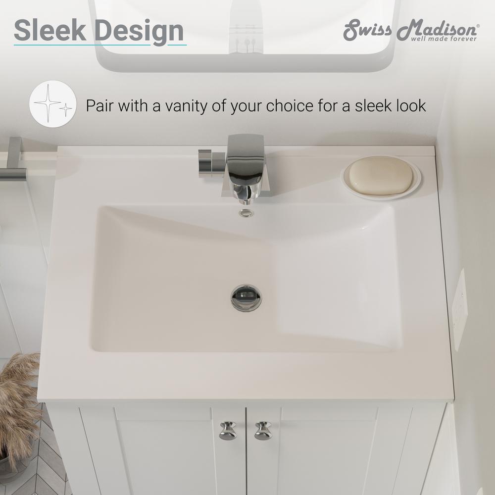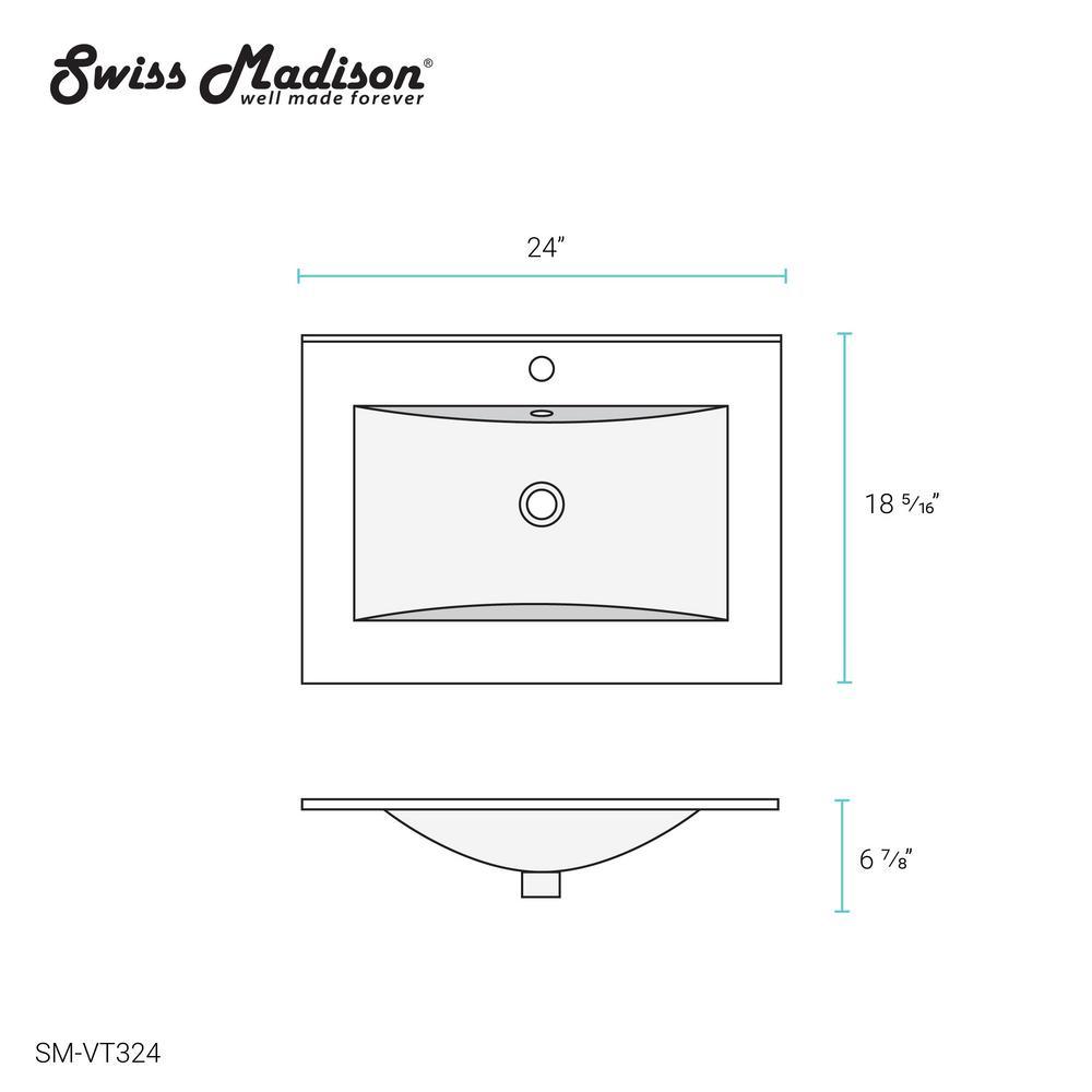 The Swiss Madison Ceramic Vanity Top Sink is ideal for any bathroom configuration. It's integrated vanity top and sink offers a practical style. Rounded edges and a glossy shine make for a unique look.