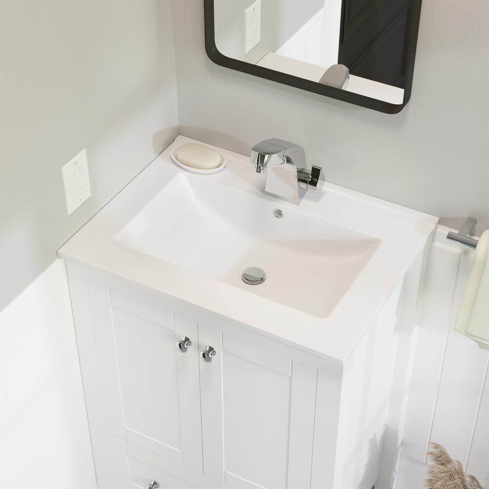 24 in. Ceramic Single Faucet Hole Vanity Top in White with White Basin