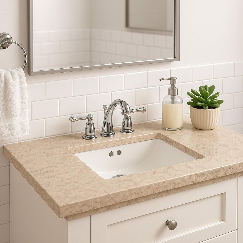 Upgrade your bathroom today with the Winter Mist Vanity Top for a blend of elegance and practicality.
