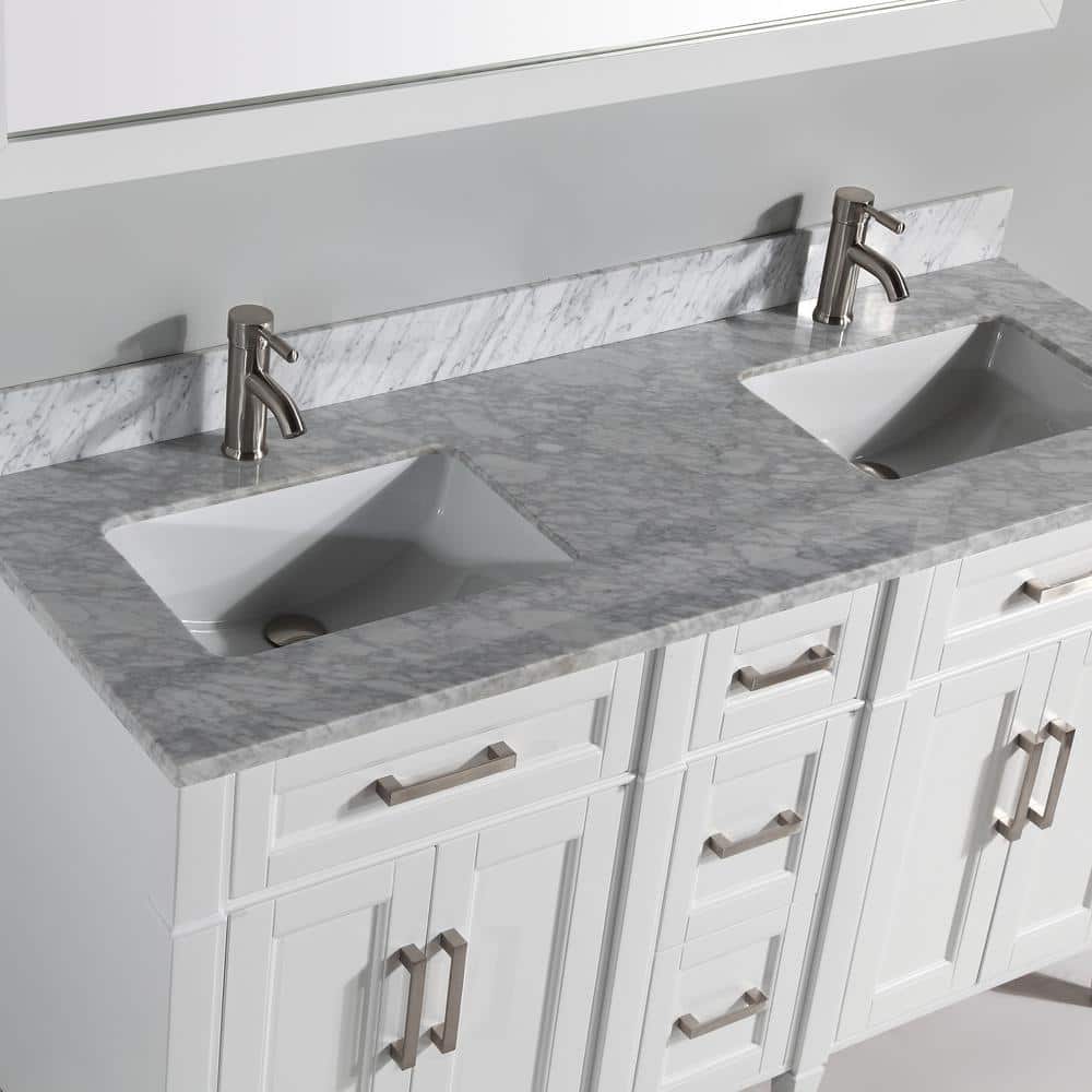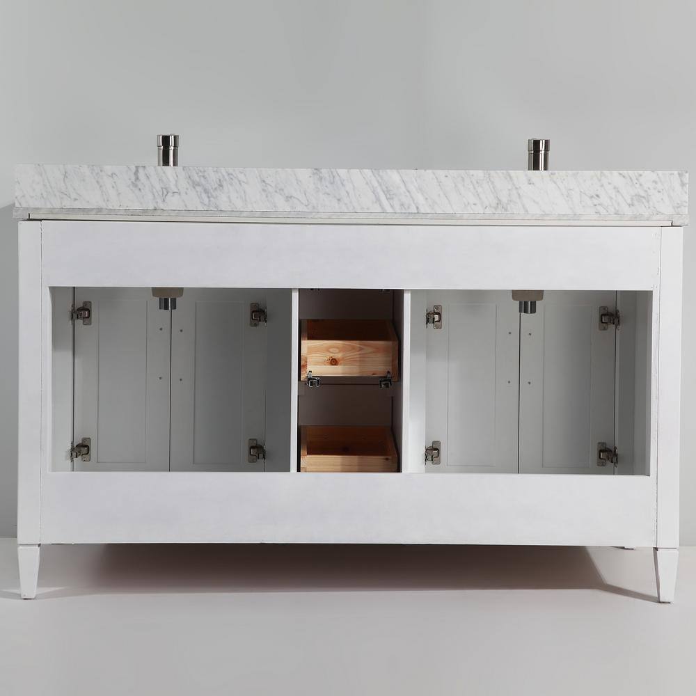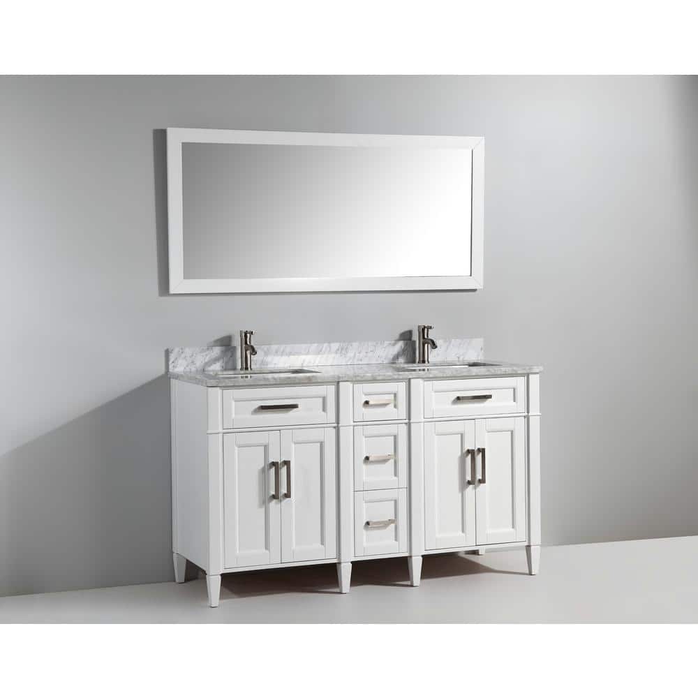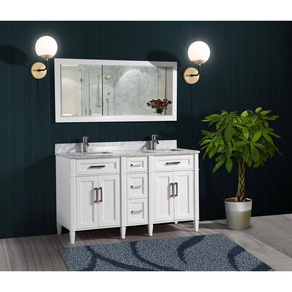 The Vanity Art Savona 60" Bath Vanity Set brings sophistication and practicality to your bathroom with its elegant Carrara marble top and spacious design. This fully assembled vanity includes soft-closing doors and drawers, a sleek white finish, and a coordinating mirror, making it a perfect turnkey solution for any modern bath.