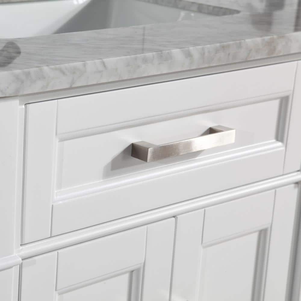 Elegant Design: Features a sophisticated white finish with a grey Carrara marble top that adds a touch of luxury to any bathroom.