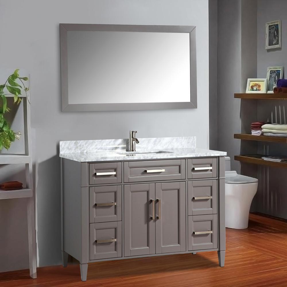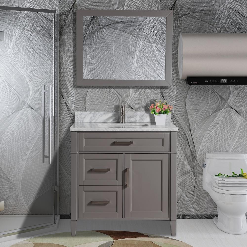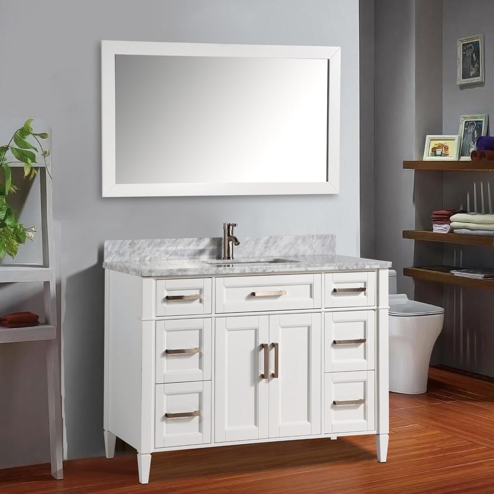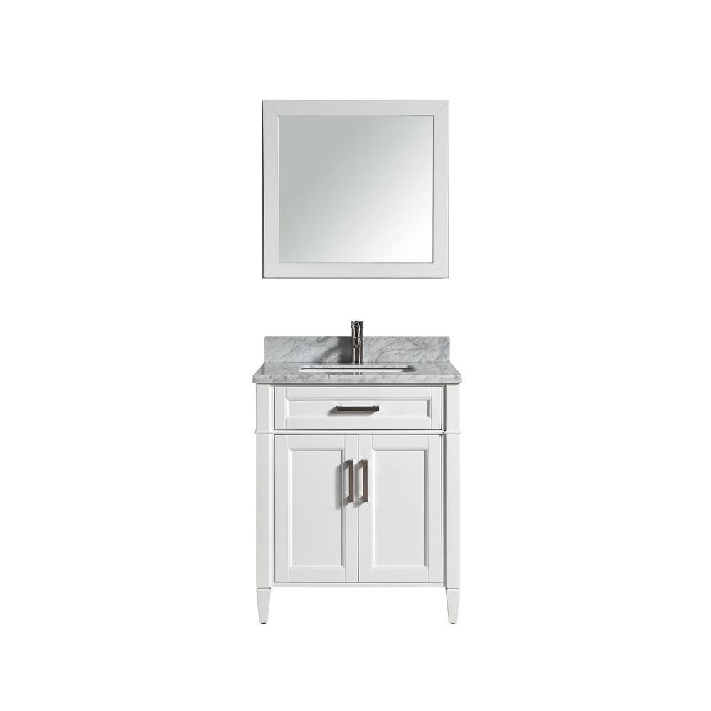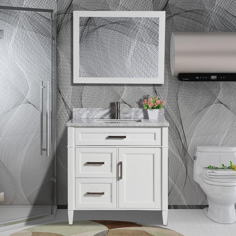 • Carrara marble vanity top with pre-attached undermount sink, 4 in. H backsplash