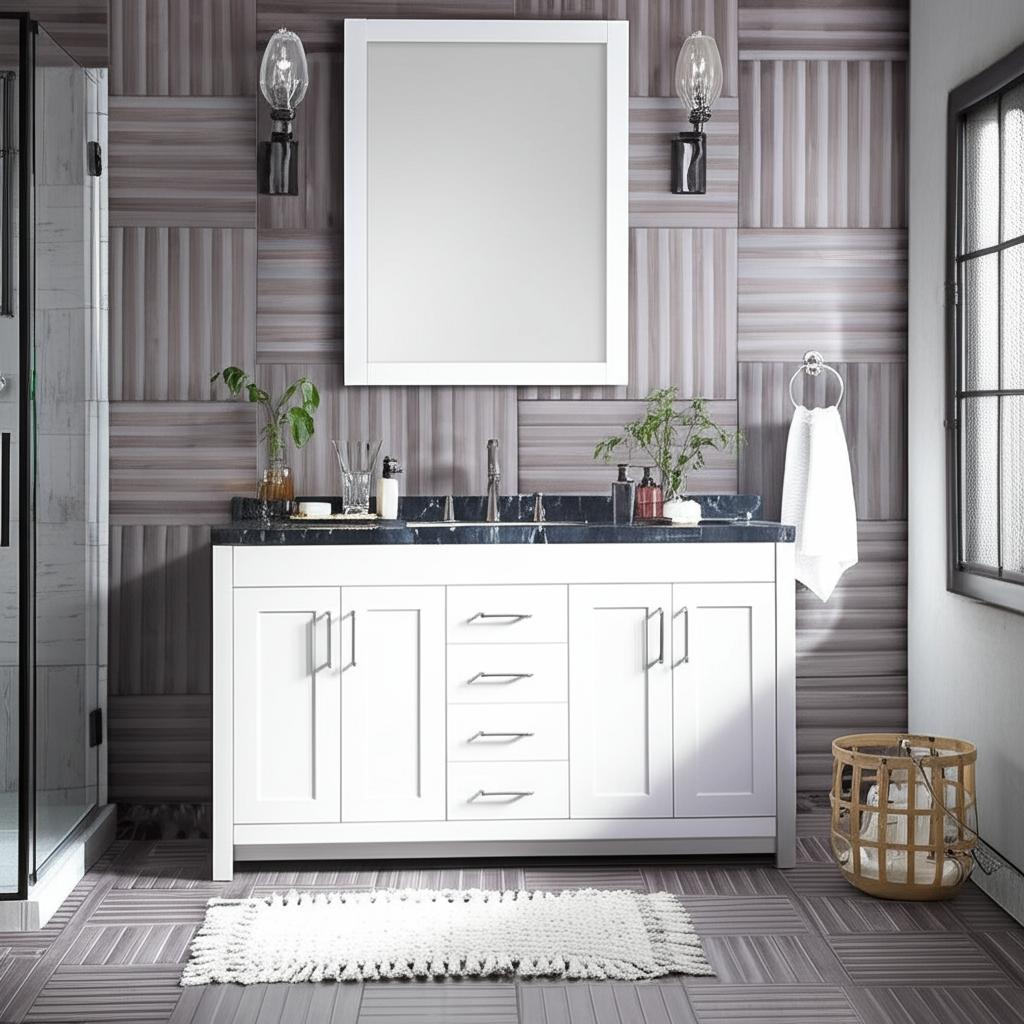 The Westcourt 60-inch bathroom vanity combines modern design with practical storage solutions. Featuring shaker-style doors, soft-close hinges, and a durable white laminate finish, this vanity is perfect for enhancing your bathroom's style and functionality.