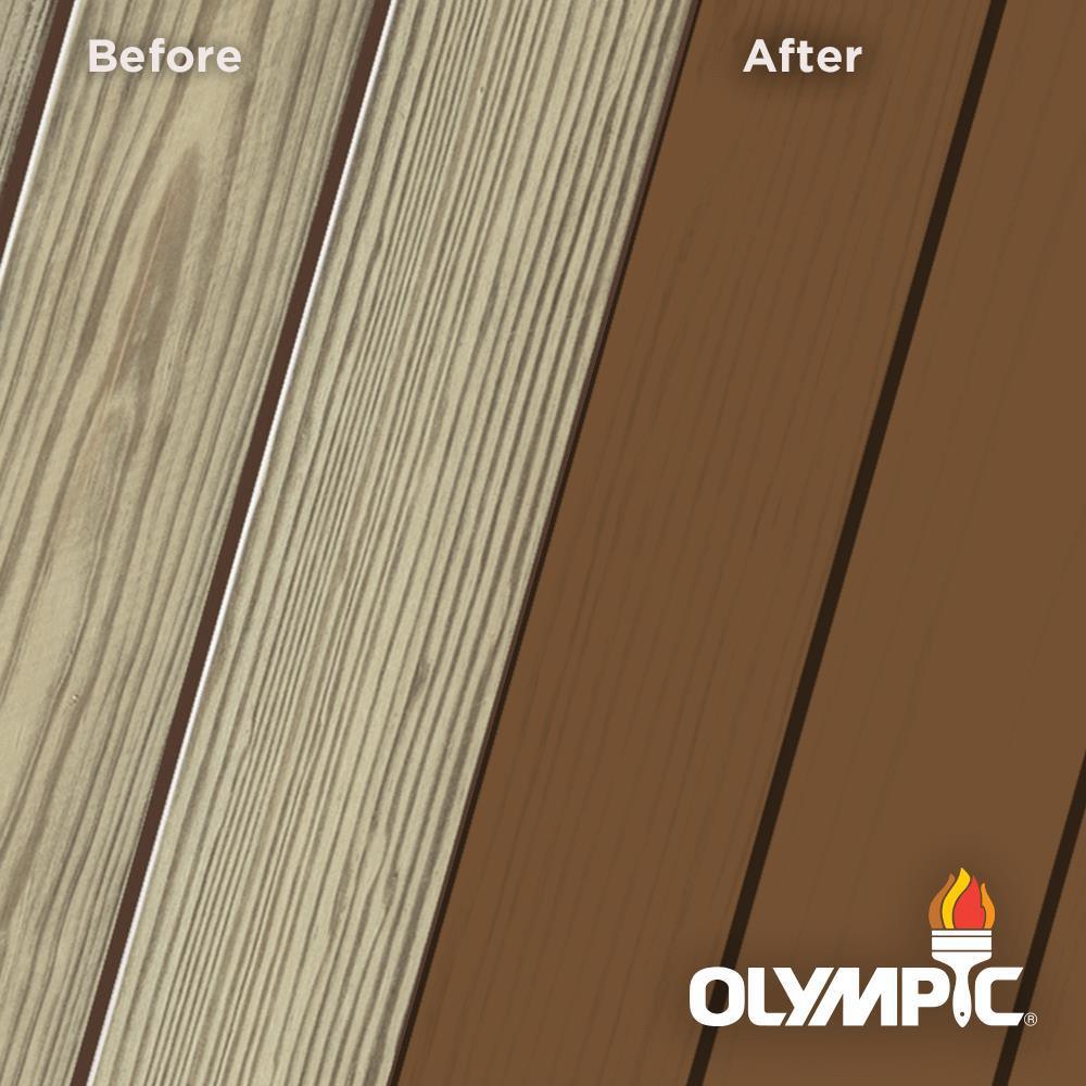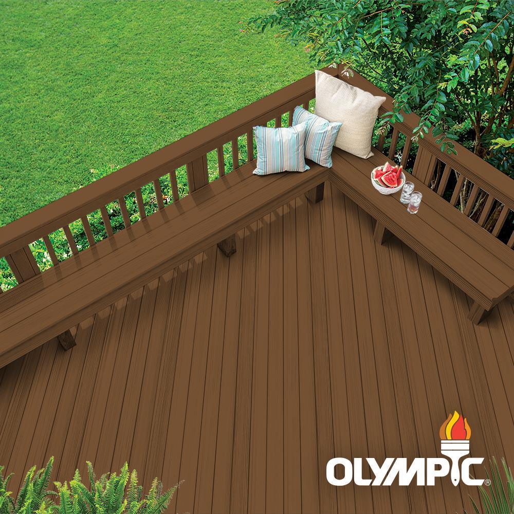 Olympic ELITE: A premium wood stain and sealant. This solid wood stain adds a rich, opaque stain color while still allowing the texture of the wood to show. This super-premium exterior wood stain is formulated to protect and enhance the natural look of wood while providing protection and beauty through all seasons with a powerful mold, mildew and algae-resistant finish. All backed by a lifetime guarantee. Recommended for use on any properly prepared exterior wood, including decks, fences, siding, railings, outdoor furniture and other wood surfaces.