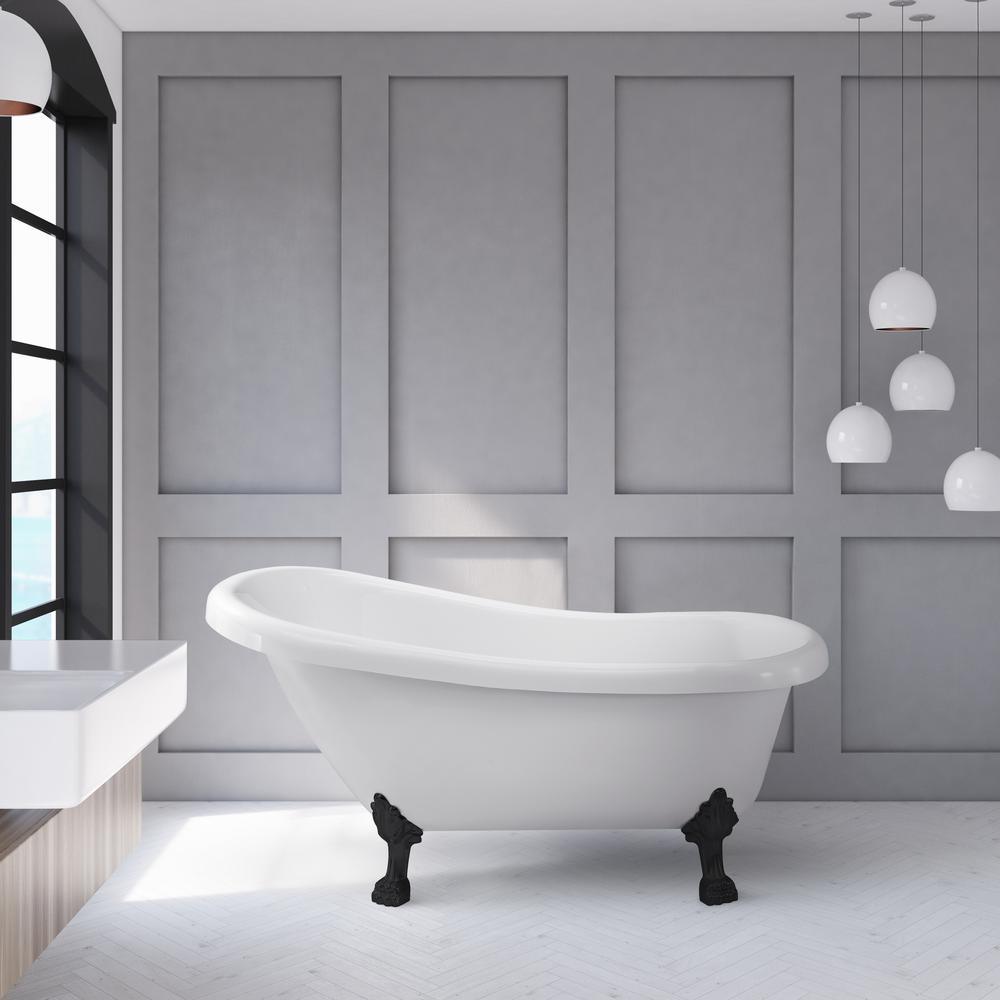 This beautiful Streamline 61" vintage style clawfoot tub will add a classic and luxurious look to your bathroom. Its glossy white finish pairs up perfectly with its intricate black legs. It's spacious interior can hold up to 48 gallons of water and is designed with a chrome drain. This bathtub does NOT have an overflow installed. No overflow can be installed on this bathtub.
