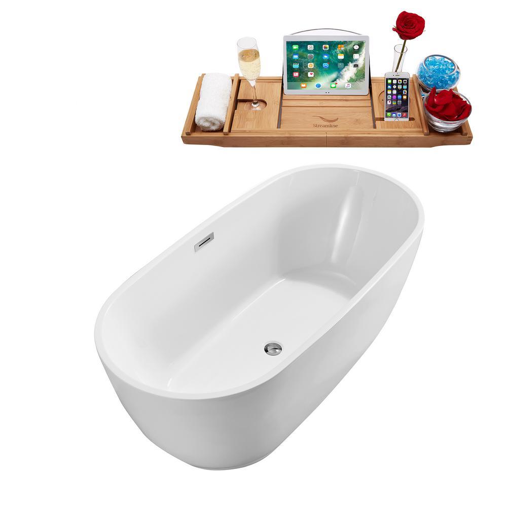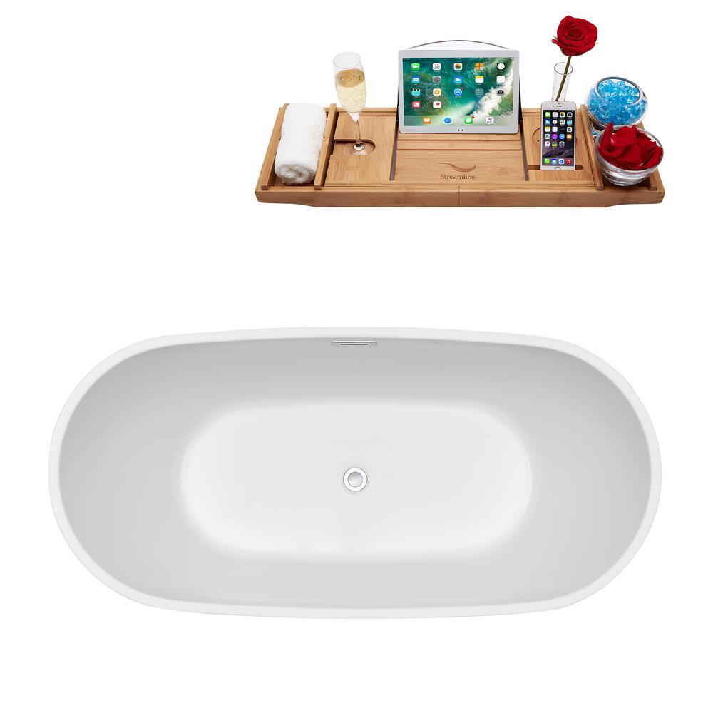 Accentuate your bathroom with this StreamLine 71 in. ellipse shaped bathtub. It is white glossy finish and beveled base will give your bathroom a touch of modern luxury. This tub has an internal drain and can hold up to 79 Gal. of water.