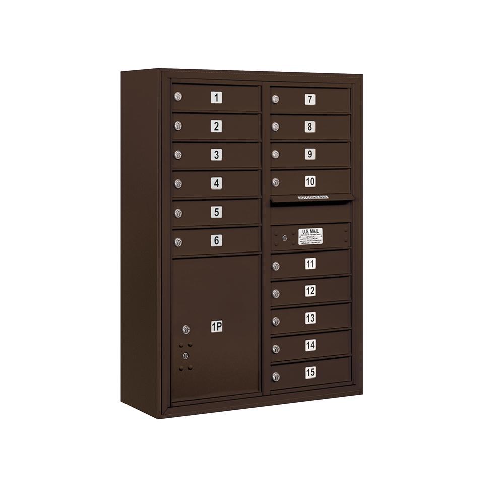 3800 Horizontal Series 15-Compartment with 1-Parcel Locker Surface Mount Mailbox