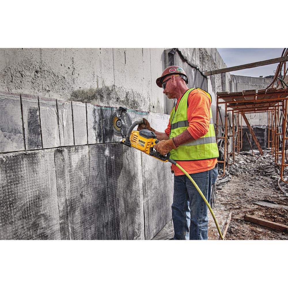 The DEWALT FLEXVOLT 60-Volt MAX Cordless Brushless Cut-Off Saw makes cuts up to 3-1/4 in. D and features a high-performance brushless motor that provides up to 6,500 RPM with instant-on functionality. Make fast and efficient single pass cuts and scores in concrete, pavestones, steel, and rebar. A rotatable 5-position guard allows selection of approach angle for optimal visibility and accessibility when cutting in tight spaces.