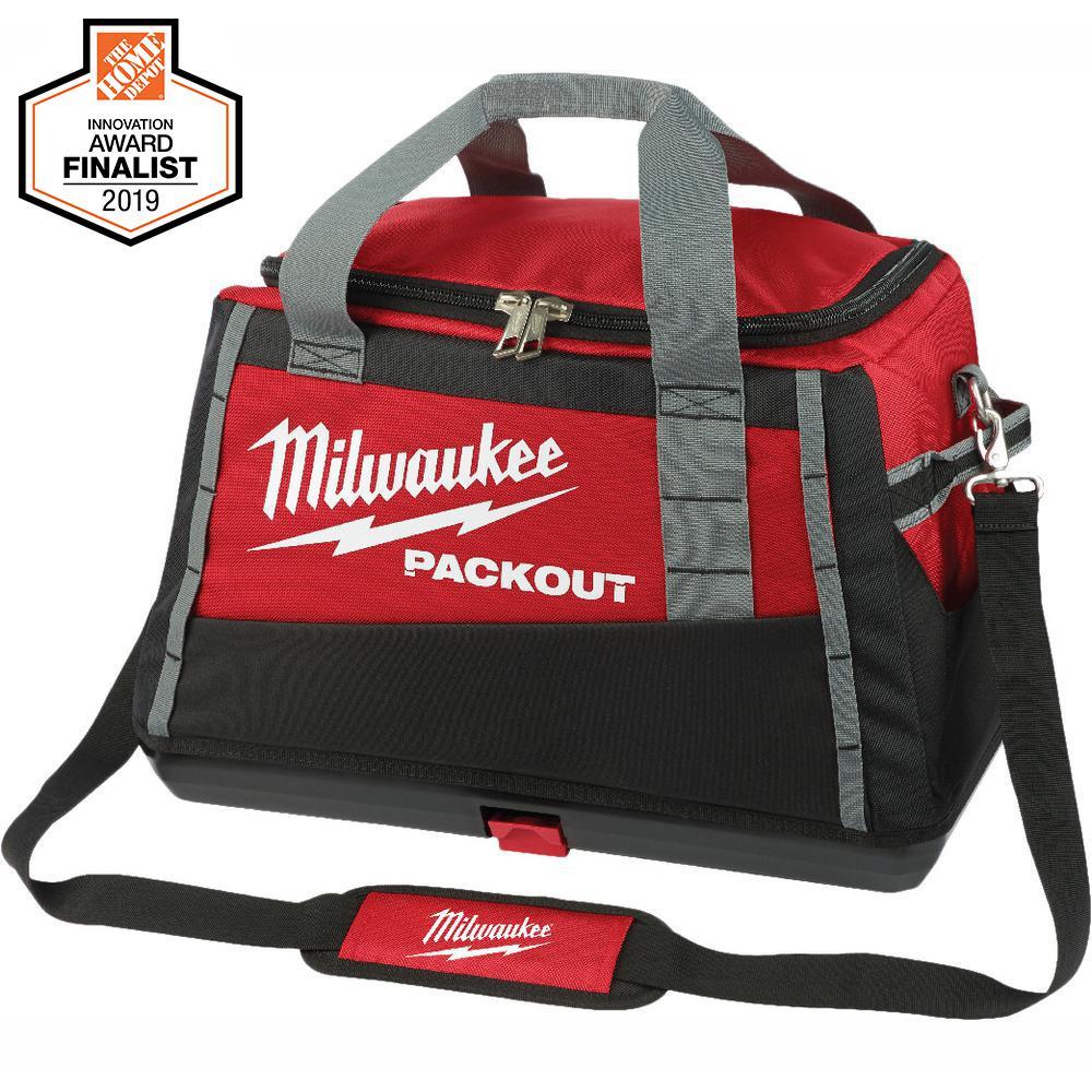 The PACKOUT modular storage system is the industry's most durable and versatile storage system. The 15" PACKOUT tool bag features an impact-resistant molded base that connects with all other PACKOUT system components via integrated locking cleats. The durable tool duffel bag is constructed with 1680D ballistic material and all-metal hardware so it can withstand harsh jobsite environments. The 15" tool bag features open storage and two exterior pockets for tools and accessories allowing easy access and visibility. Cushioned shoulder strap, top handles and side handles allowing users to easily and comfortably transport the tool bag wherever it is needed. The PACKOUT modular storage allows users to customize and build their own storage system to easily transport and organize tools and accessories.